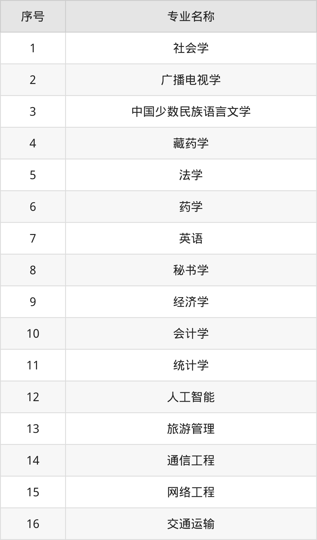 物理类(理科)本科招生专业:藏药学、药学、英语、法学、经济学、统计学、秘书学、会计学、应用化学、财务管理等。