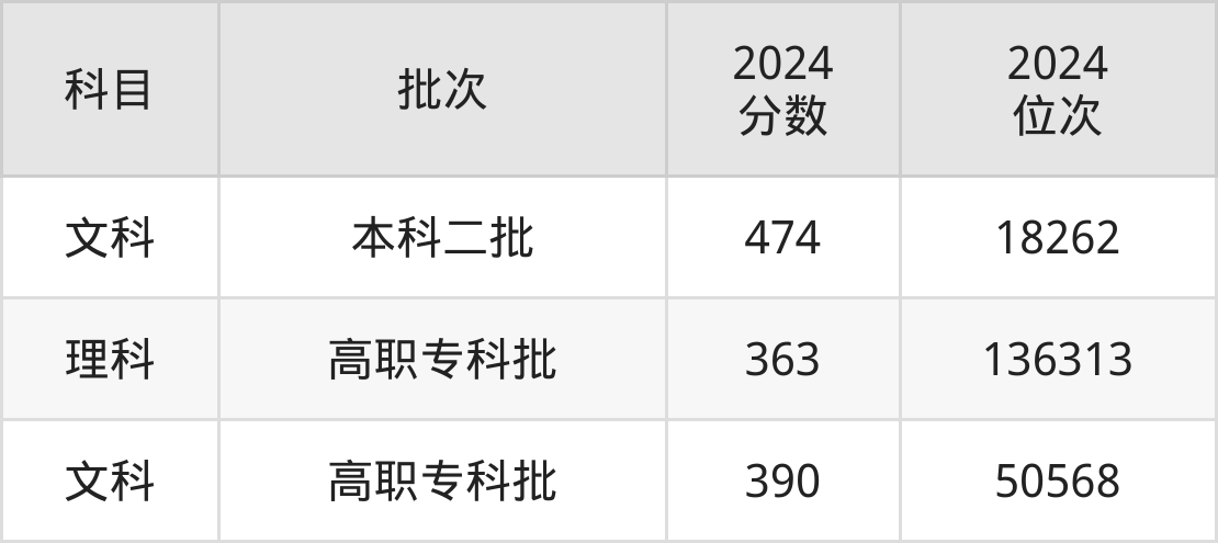 2024年陕西警察学院在陕西省内本科批录取分数线都在470分以上,且只在文科招生;而专科批录取分数线都在360分以上,理科整体录取分数线要低于文科,具体详情见下文。
