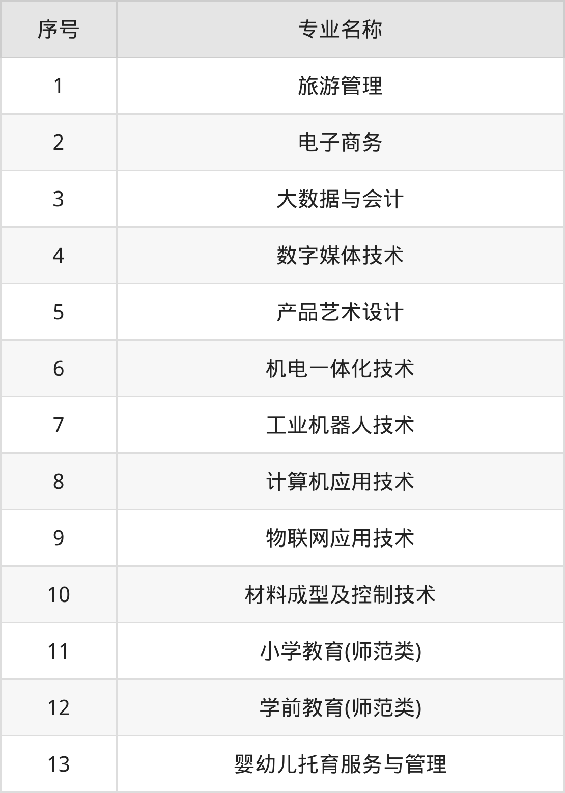 目前,鹰潭职业技术学院公布了2024年专科招生专业,共13个。