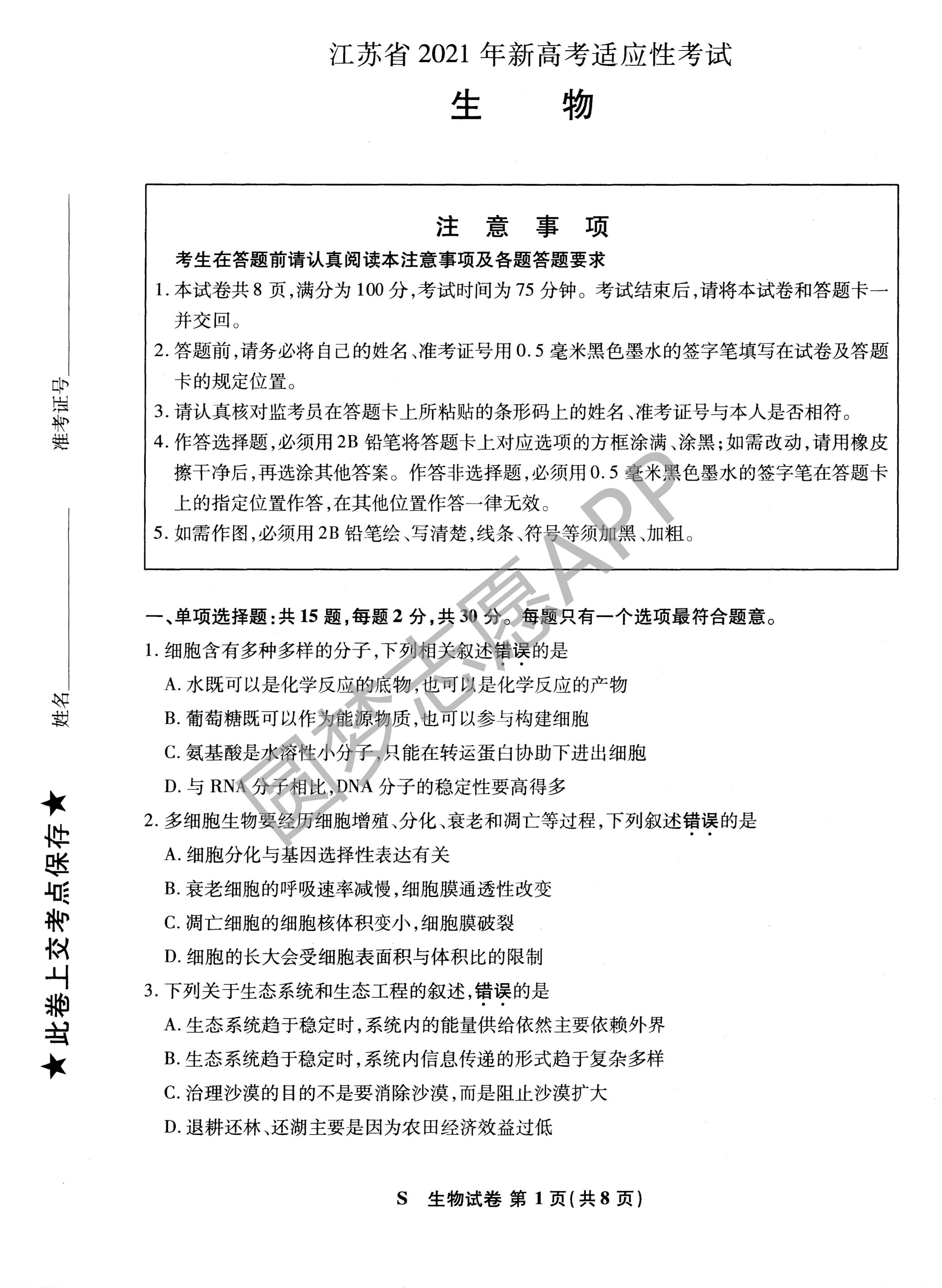 2021年新高考八省联考的生物考试已经结束,福建、湖北、湖南、河北、重庆 、辽宁、江苏、广东结束考试的考生们也正焦急地关注考试题目和答案,而为了满足大家,本文则收集有本次考试的相关资料,提供给大家参考。