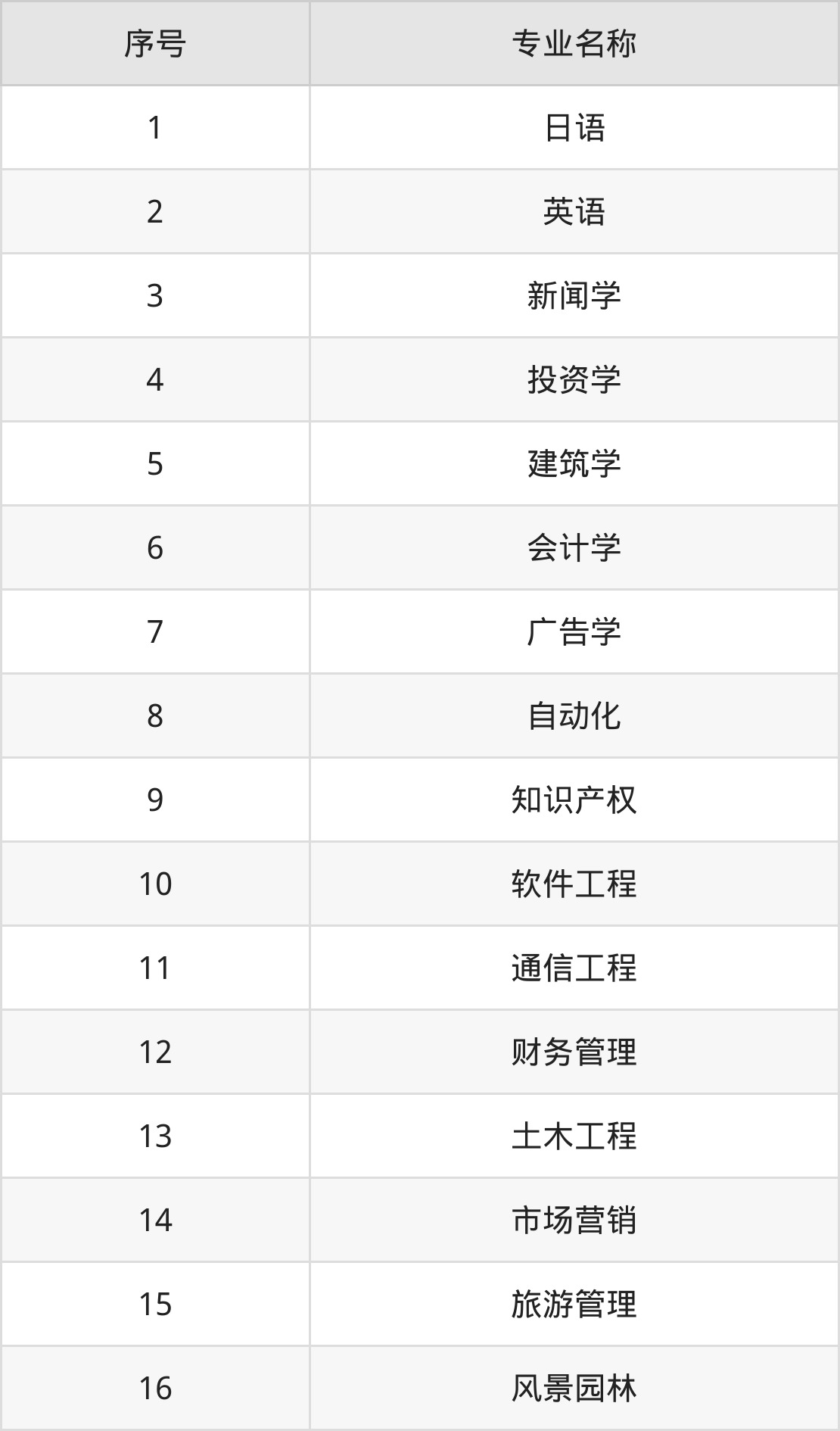 物理类(理科)本科招生专业:英语、日语、新闻学、建筑学、会计学、投资学、广告学、自动化、软件工程、知识产权等。
