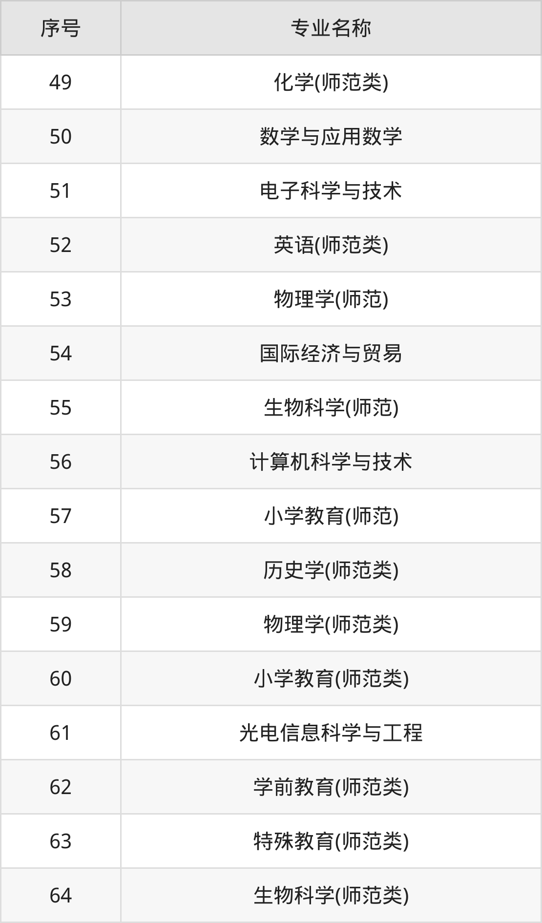 物理类(理科)本科招生专业:园林、法学、日语、英语、化学、会计学、建筑学、物理学、自动化、小学教育等。
