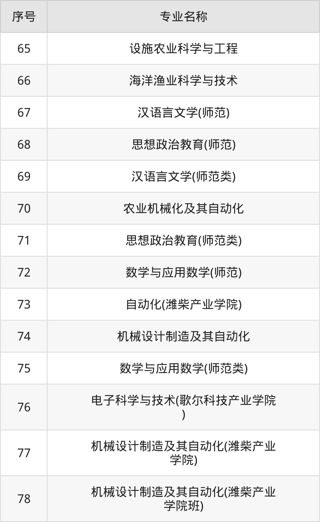 目前,潍坊学院公布了2024年本科招生专业,共78个。
