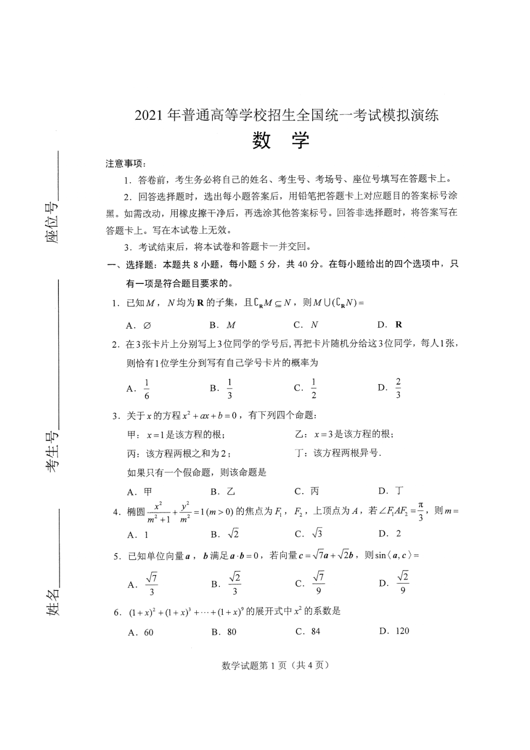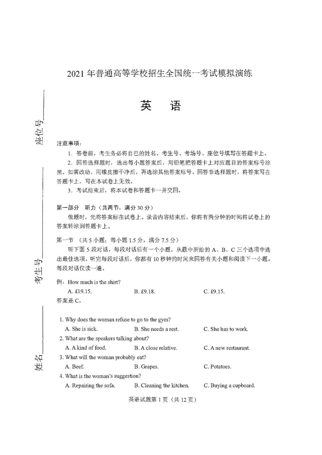 1月23日至25日,广东、福建、重庆、江苏、河北、湖南、湖北、辽宁8省份举行2021年新高考适应性考试。目前,语文、数学、物理/历史、外语考试已经结束。本篇文章主要给大家介绍2021年新高考适应性考试真题及答案和广东省适应性考试2021相关信息,供考生参考!