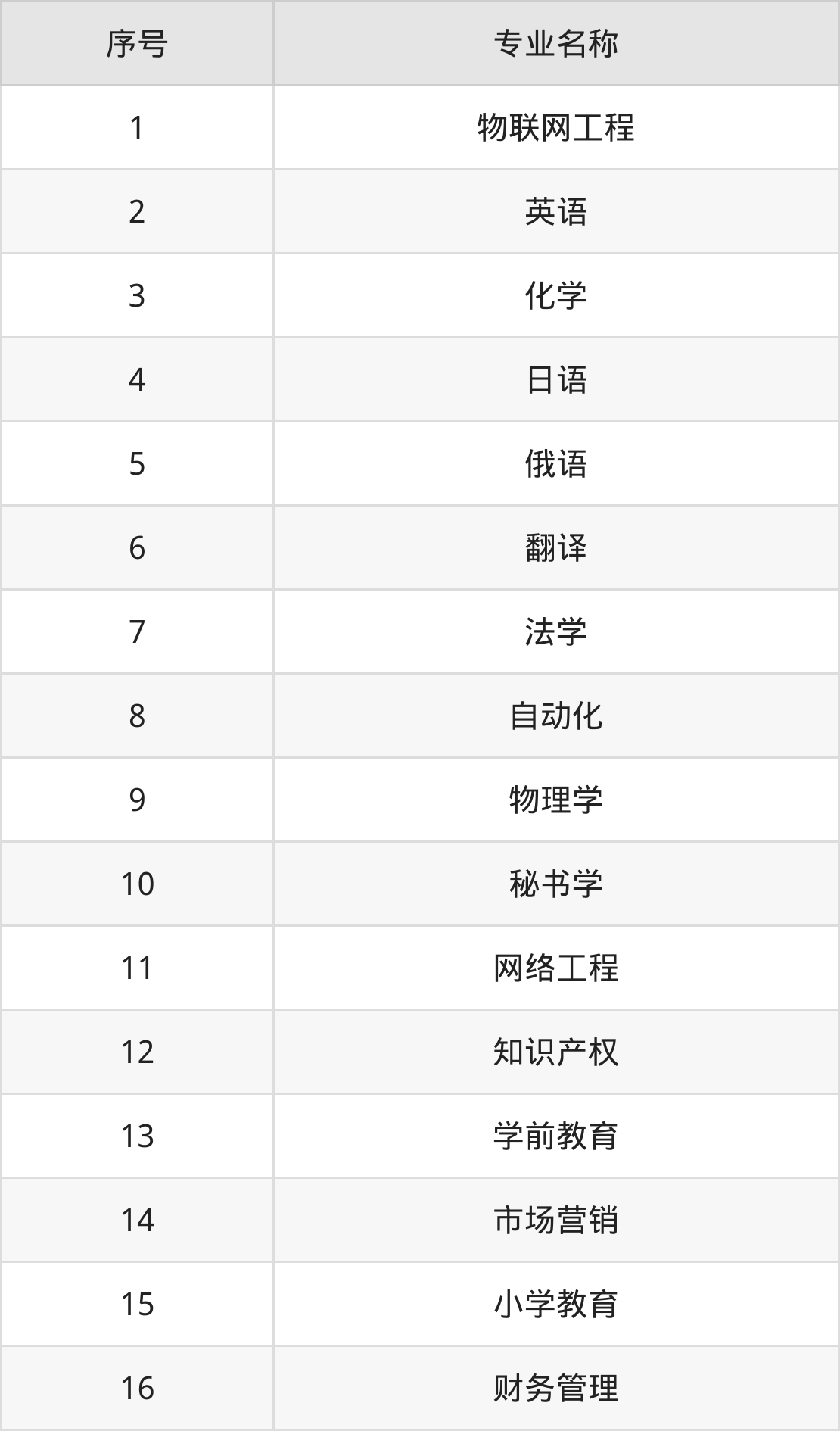 物理类(理科)本科招生专业:物联网工程、翻译、俄语、日语、法学、化学、自动化、物理学、生物技术、学前教育等。