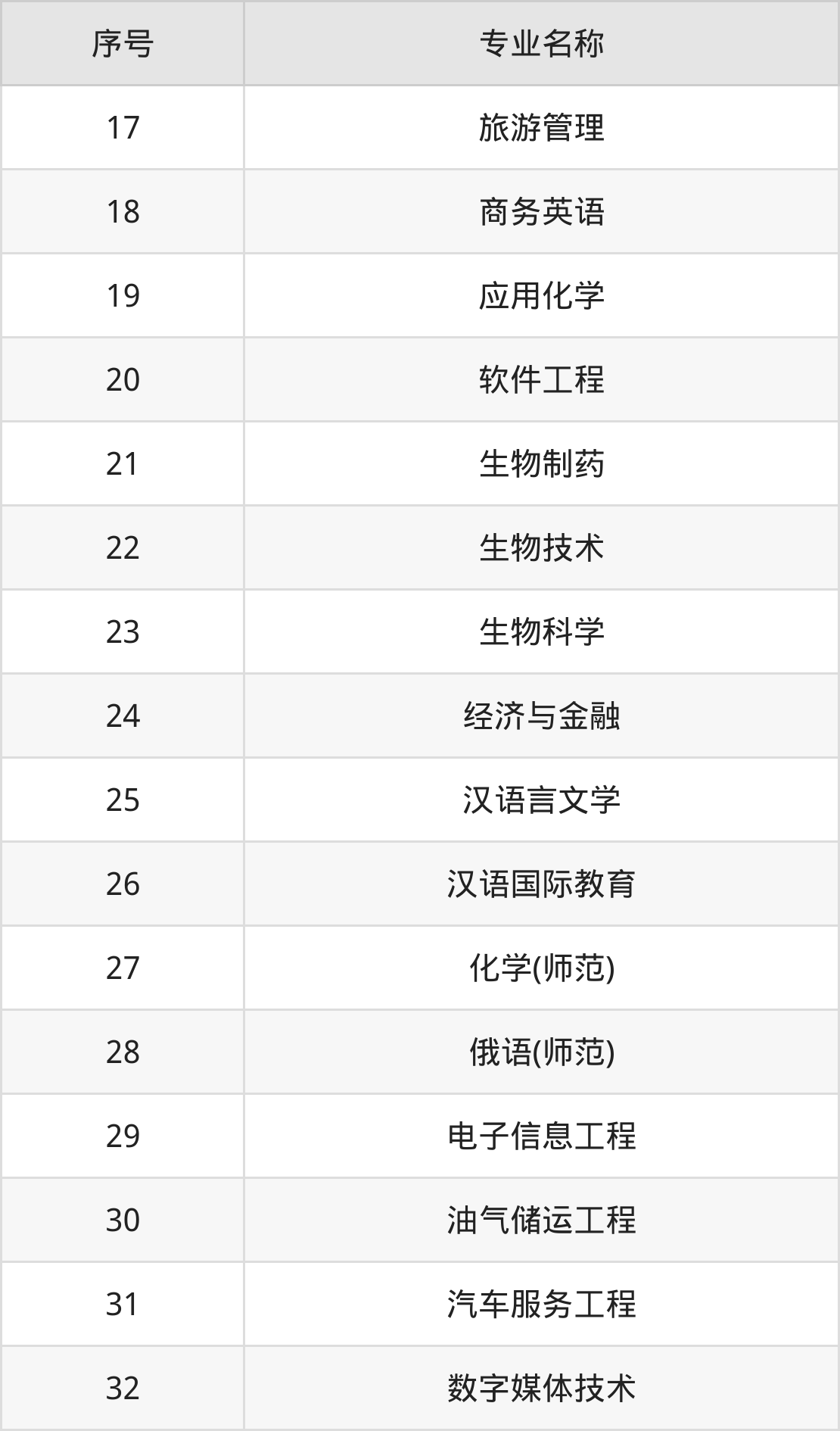 历史类(文科)本科招生专业:法学、俄语、日语、英语、翻译、秘书学、旅游管理、学前教育、知识产权、商务英语等。