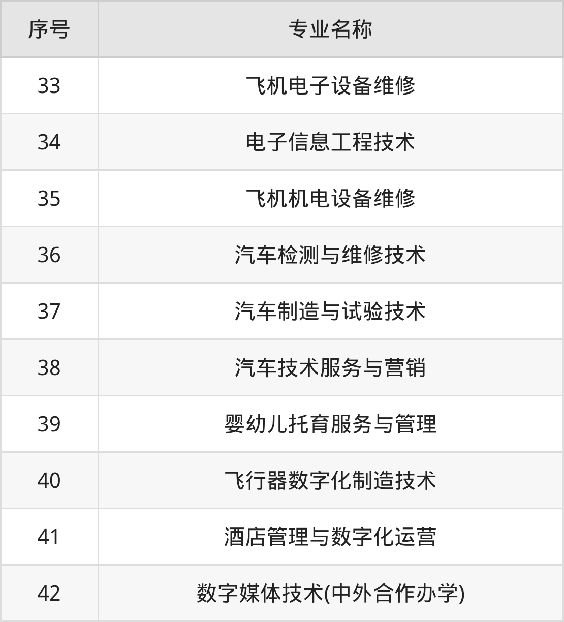 目前,四川航天职业技术学院公布了2024年专科招生专业,共42个。