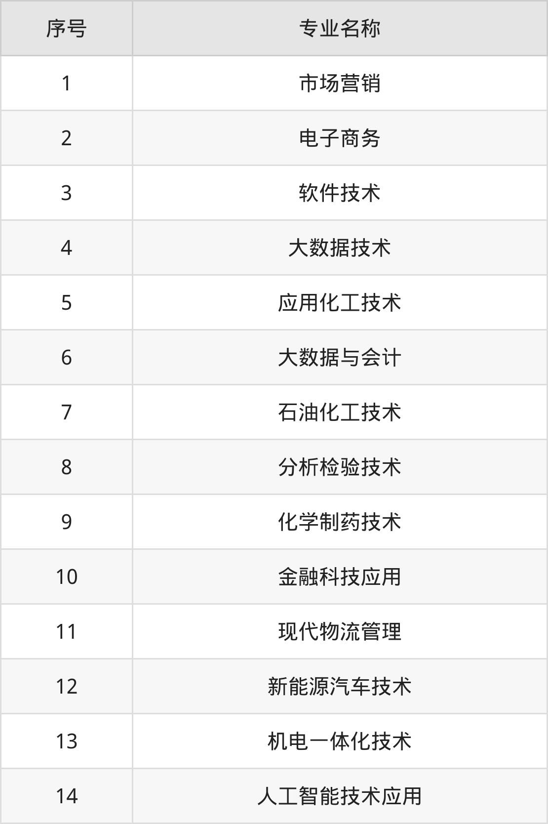 目前,山东化工职业学院公布了2024年专科招生专业,共14个。