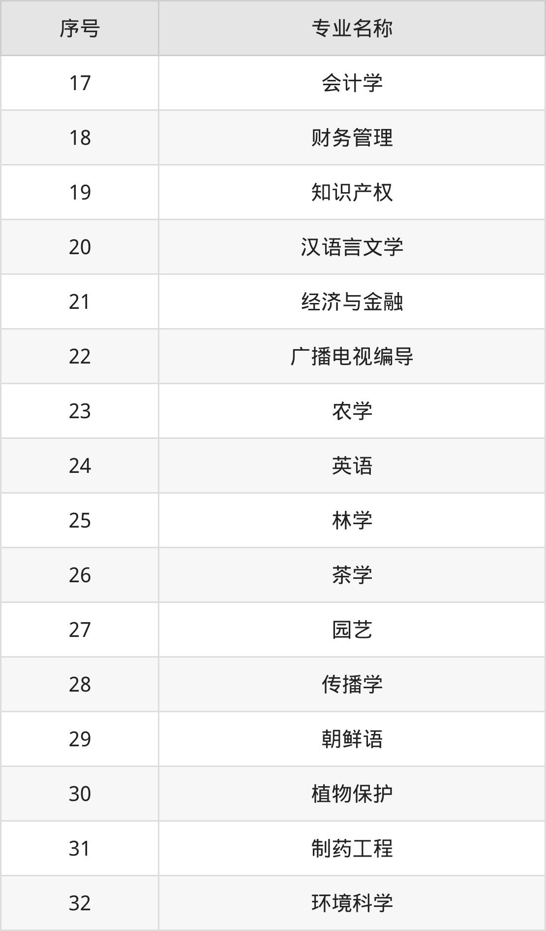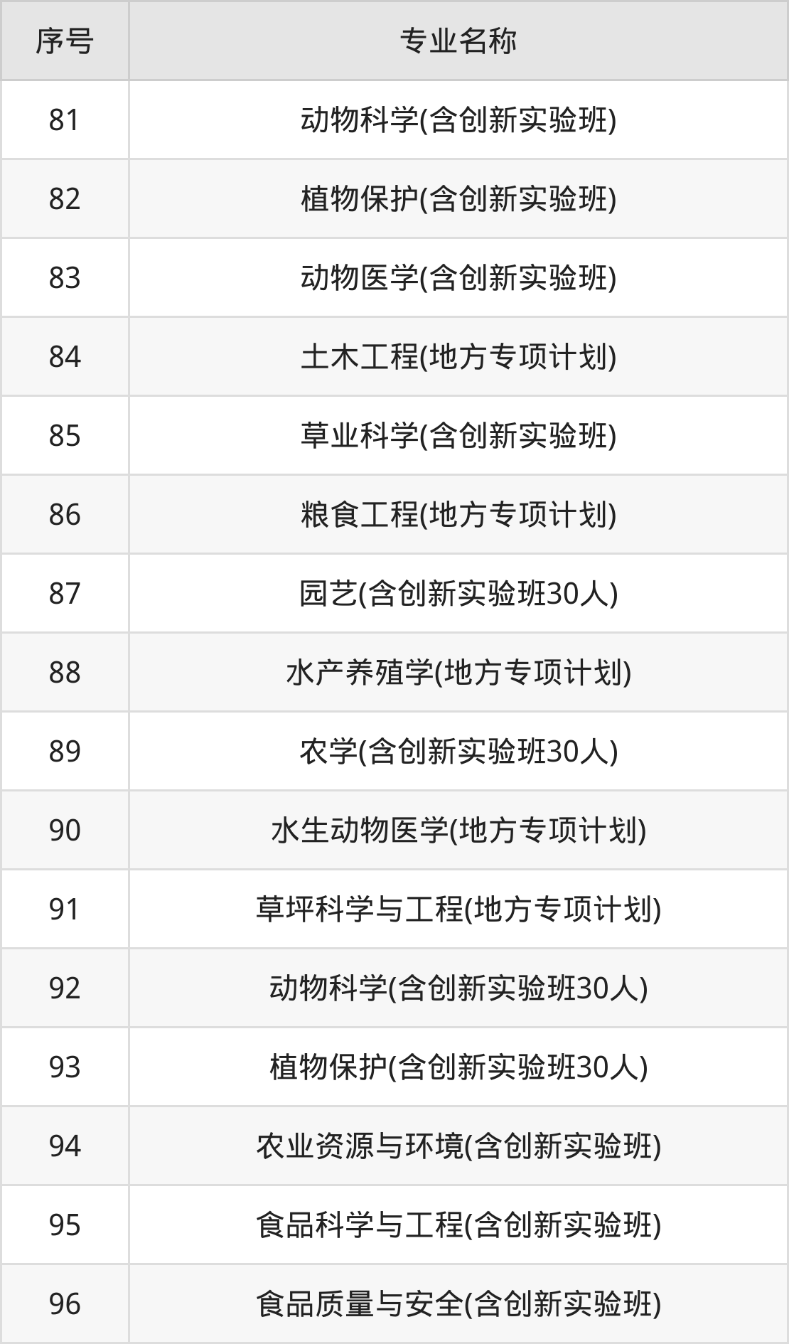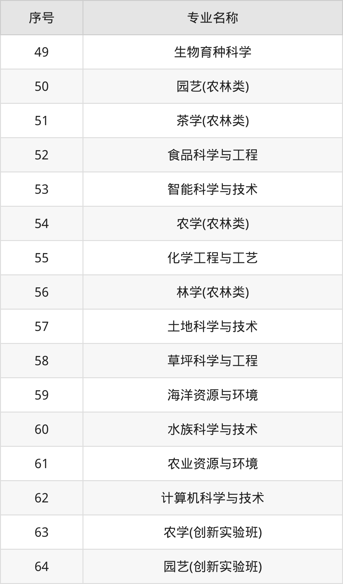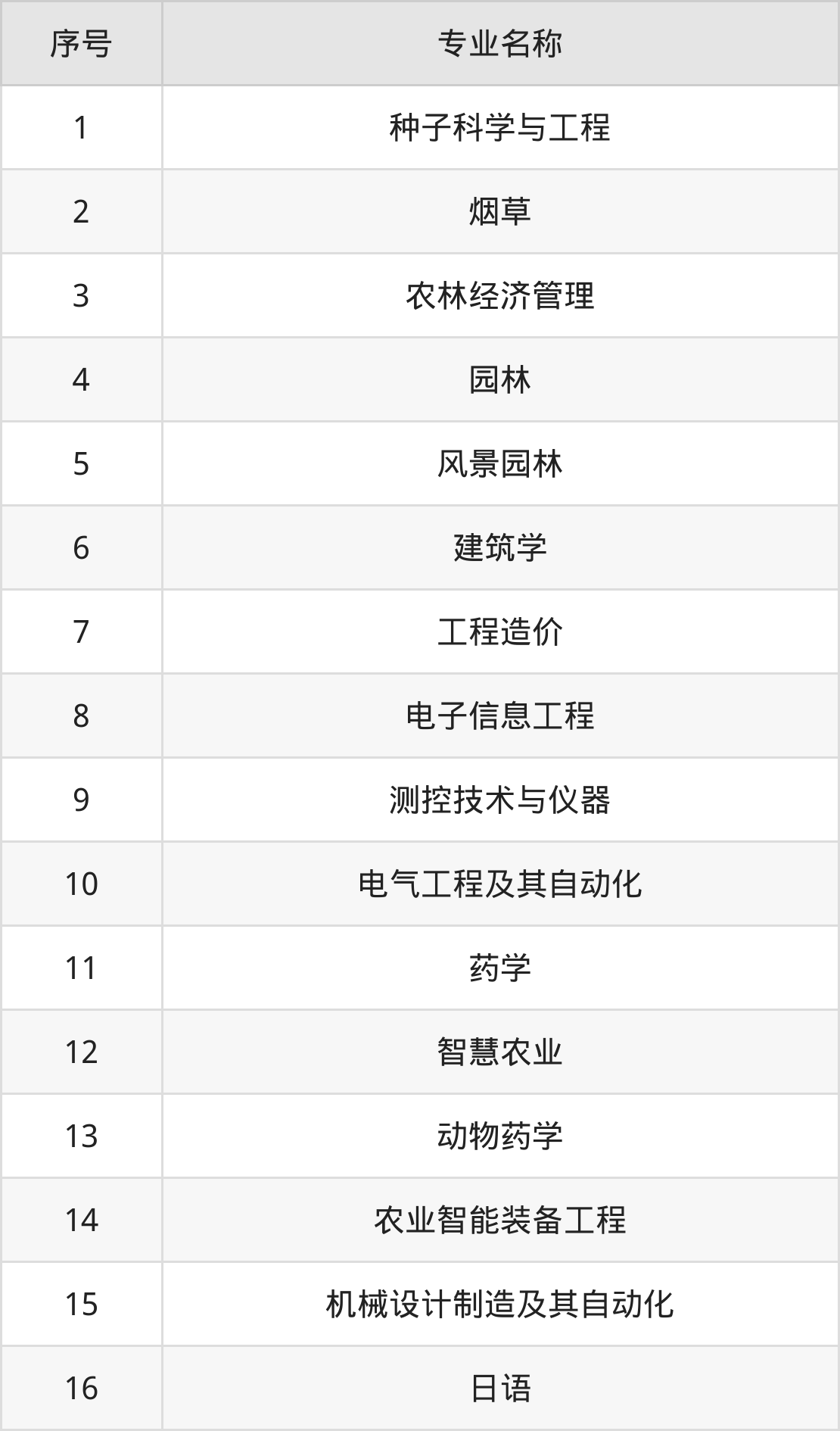 物理类(理科)本科招生专业:农学、林学、茶学、园艺、动物医学、材料化学、制药工程、动物科学、马业科学、土木工程等。