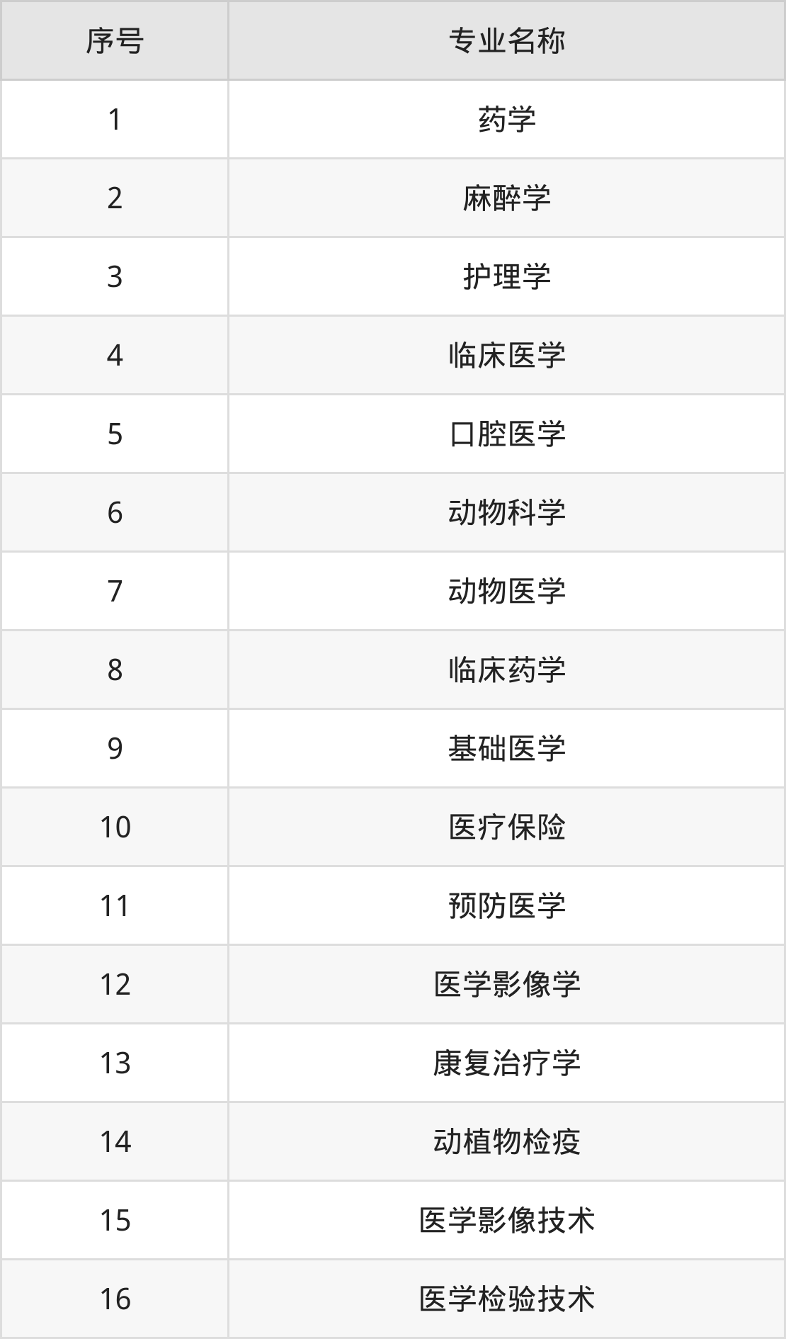 物理类(理科)本科招生专业:药学、麻醉学、护理学、基础医学、临床医学、动物科学、动物医学、临床药学、口腔医学、预防医学等。
