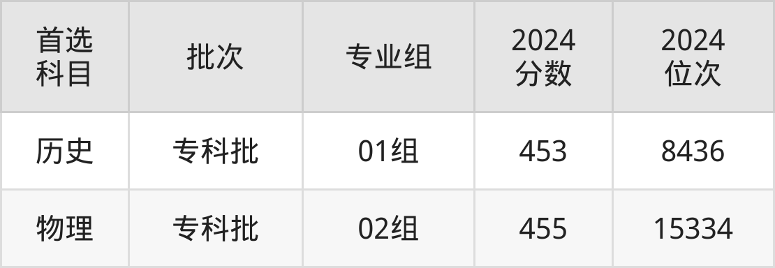 2024年南京机电职业技术学院在江苏省内专科批的录取分数线都在450分以上,在历史类的录取分数线为453分;物理类的录取分数线为455分。
