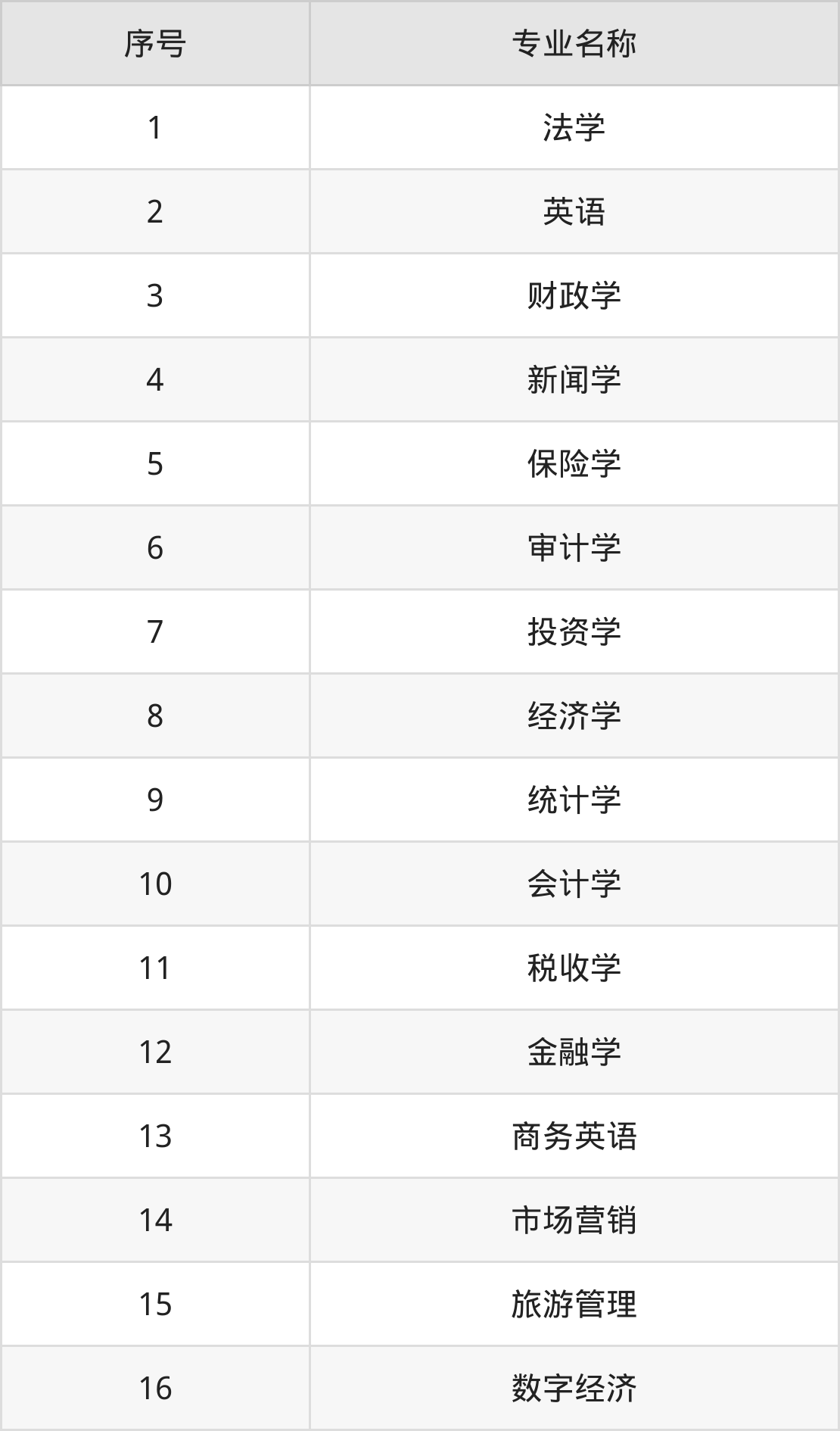 历史类(文科)本科招生专业:法学、英语、经济学、保险学、新闻学、会计学、金融学、审计学、投资学、财政学等。