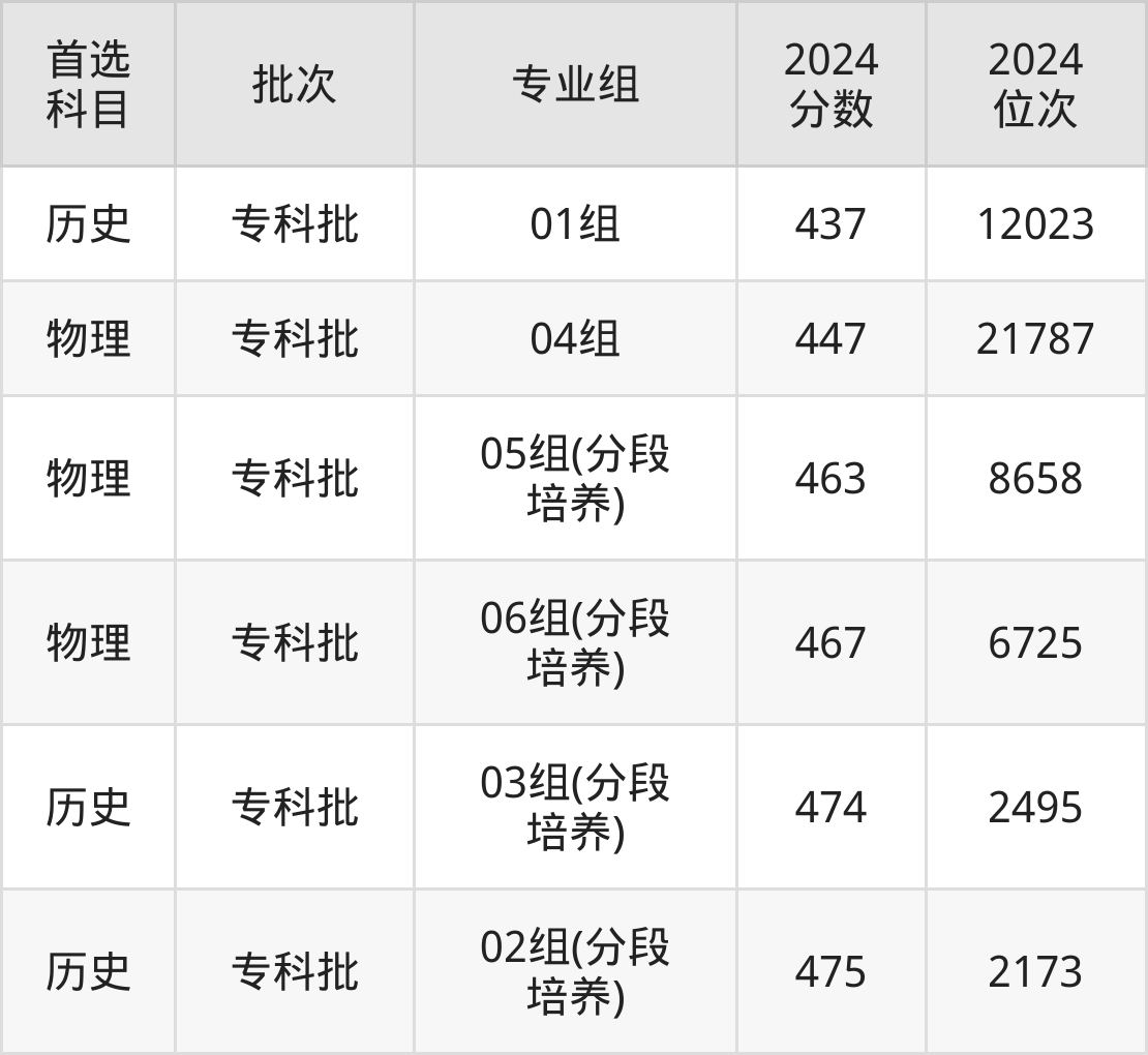 2024年南京城市职业学院在江苏省内专科批的录取分数线都在430分以上,在历史类的录取分数线在437分-475分之间;物理类的录取分数线在447分-467分之间。