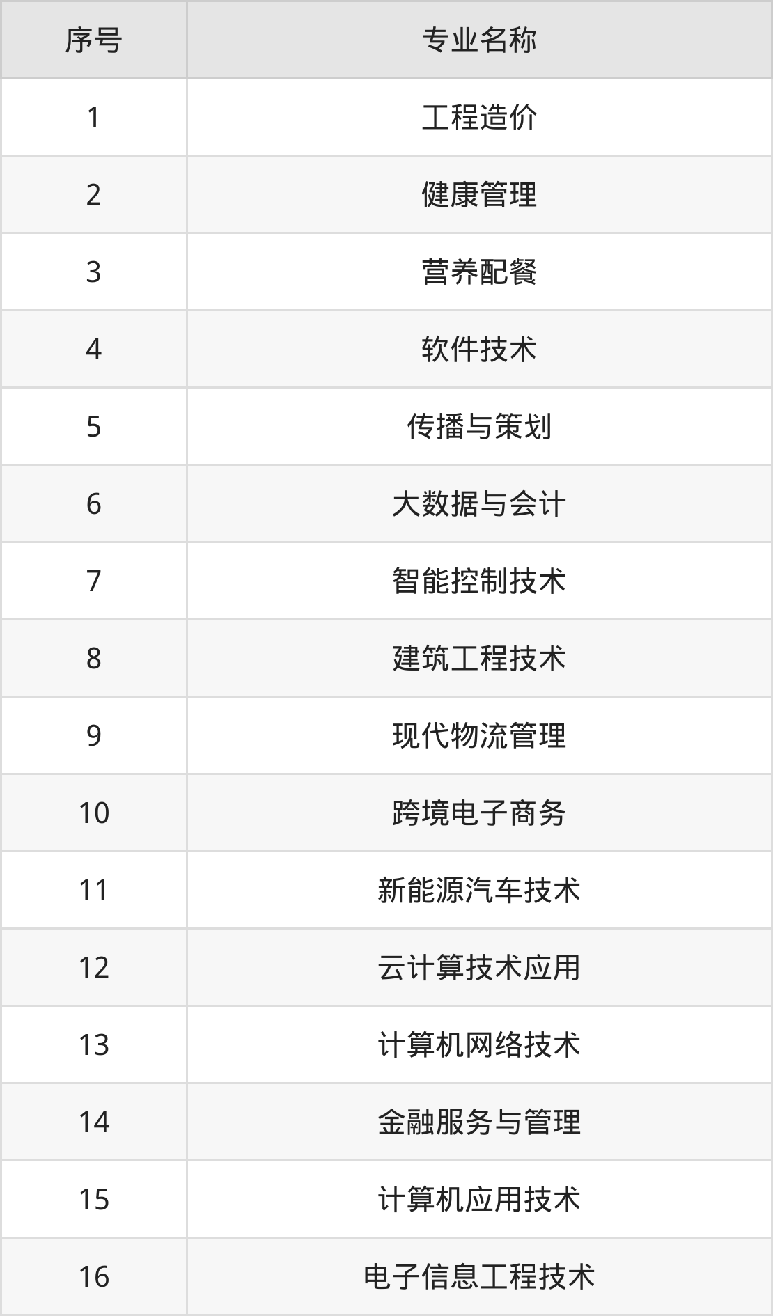 专科招生专业: