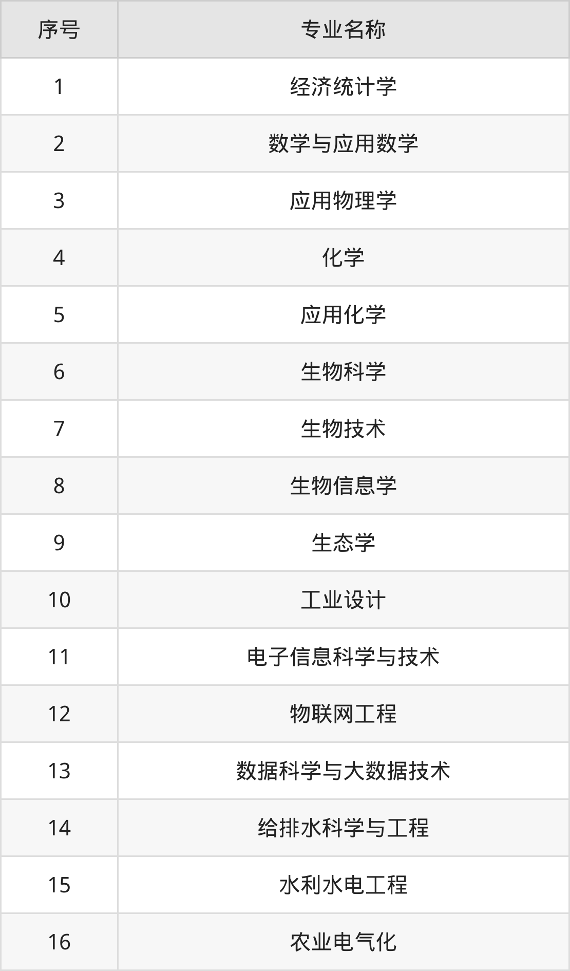 物理类(理科)本科招生专业:经济统计学、数学与应用数学、应用物理学、化学、应用化学、生物科学、生物技术、生物信息学、生态学、工业设计等。