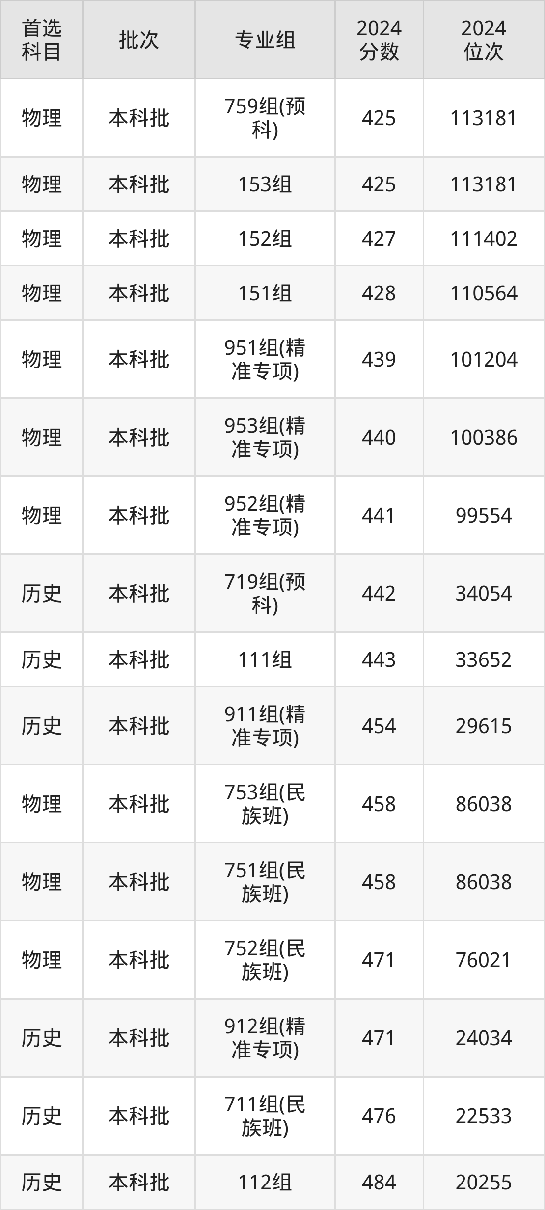 从2024年广西科技师范学院在广西壮族自治区内的录取分数线来看,本科批录取分数线都在420分以上,录取分数线最高的是112组,2024年最低分为484分;录取分数线最低的是759组(预科),2024年最低分为425分。