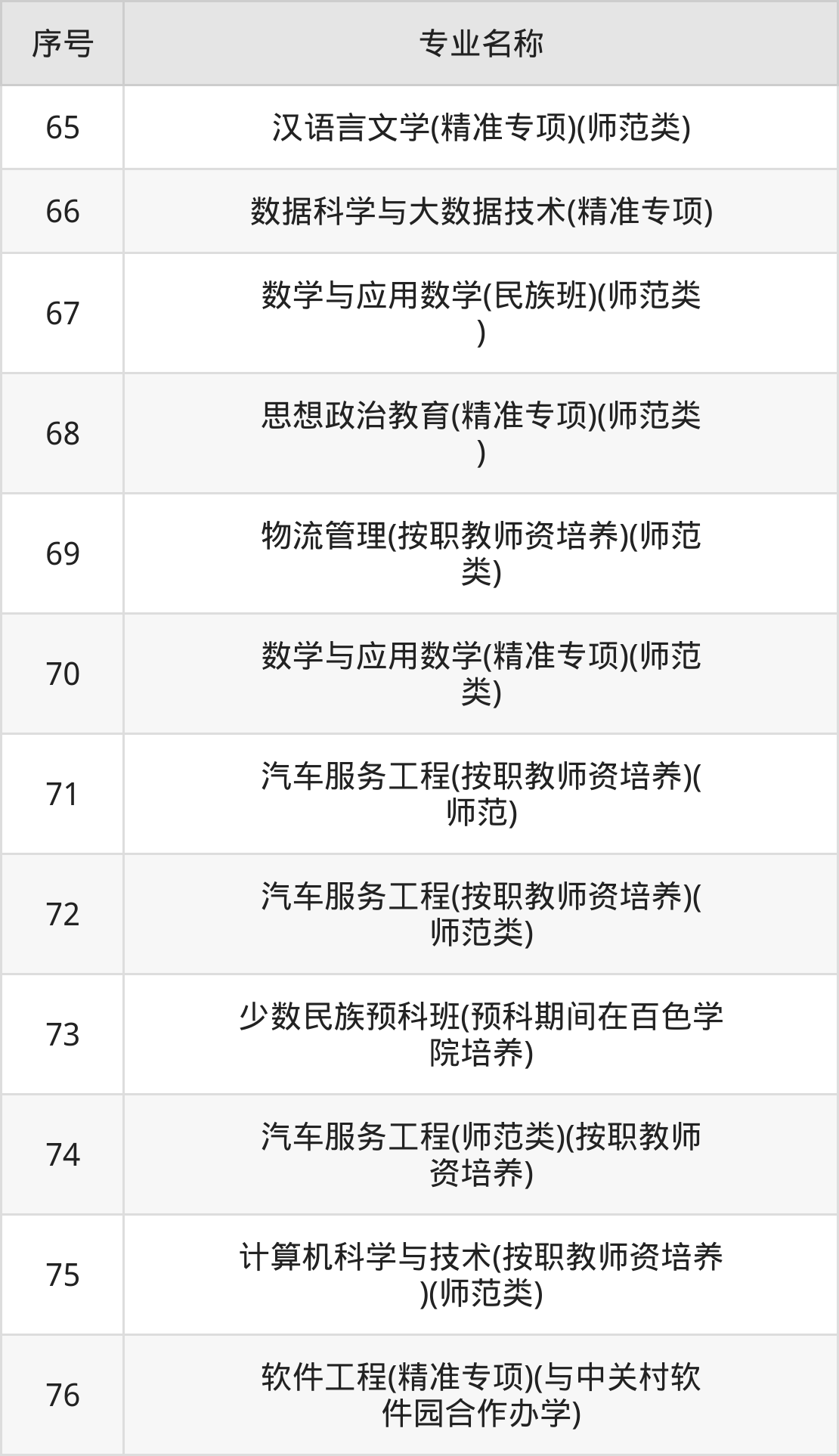 目前,广西科技师范学院公布了2024年本科招生专业,共76个。
