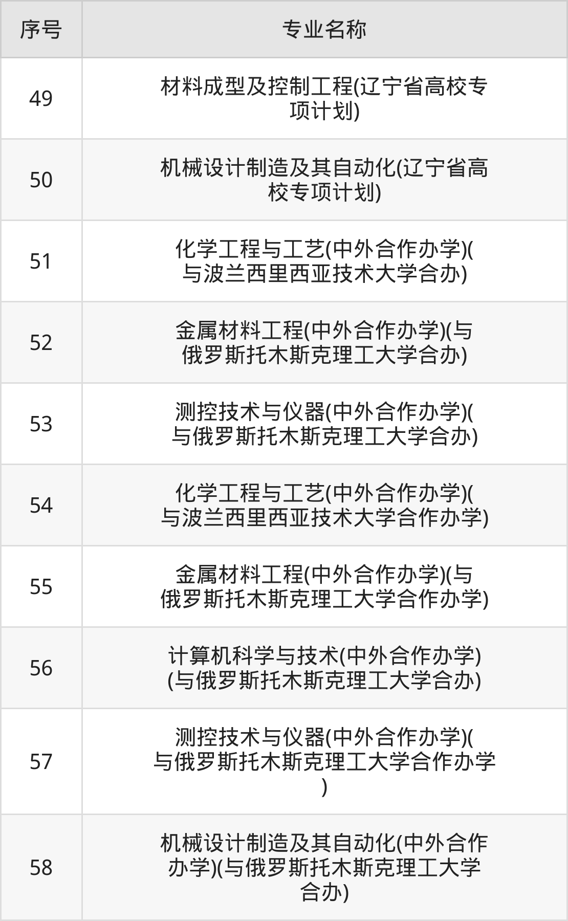 目前,沈阳理工大学公布了2024年本科招生专业,共58个。