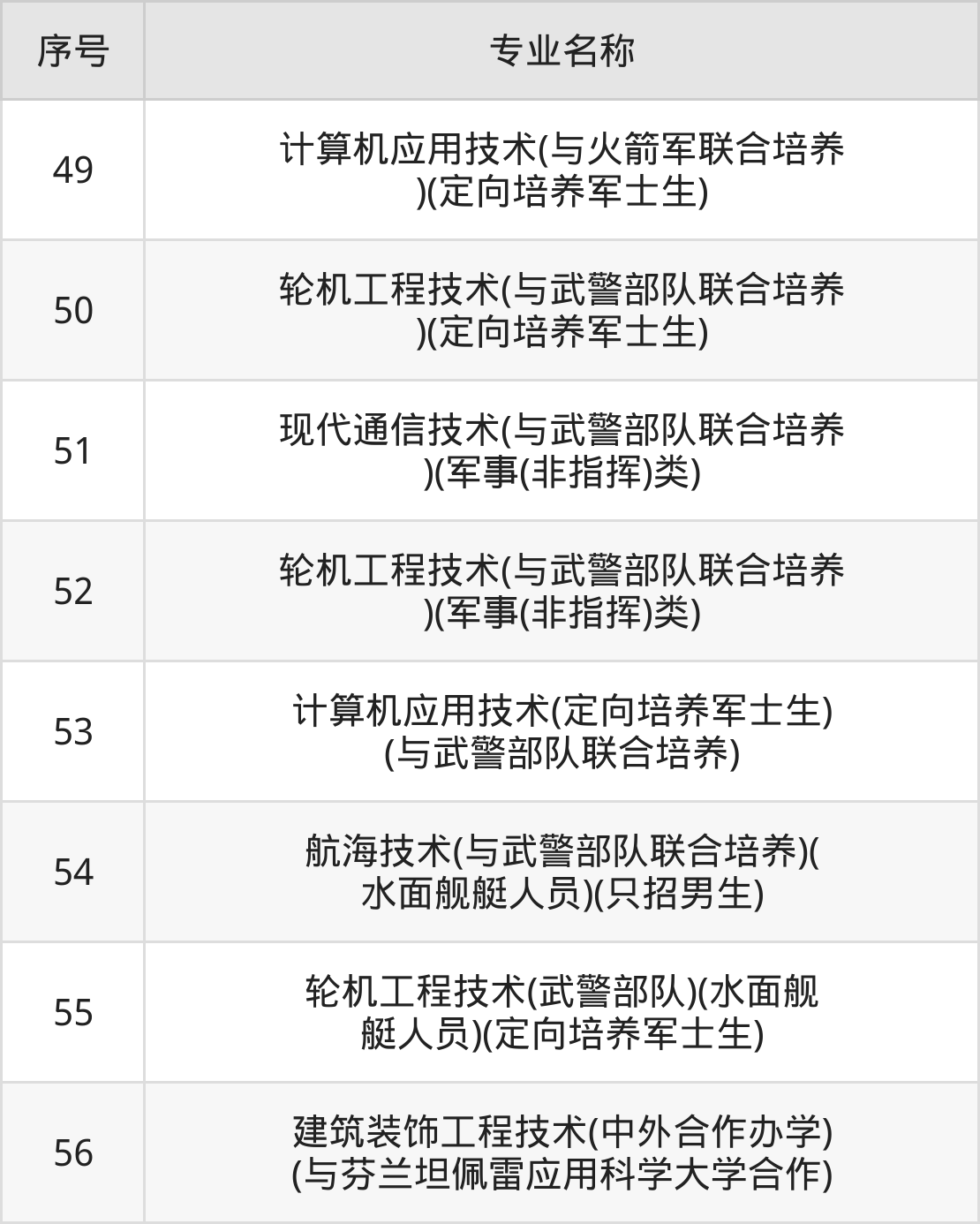 目前,威海职业学院公布了2024年专科招生专业,共56个。