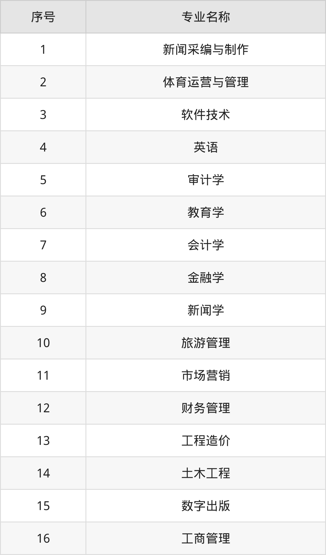 历史类(文科)本科招生专业:英语、会计学、教育学、金融学、审计学、新闻学、财务管理、工程管理、小学教育、国际商务等。