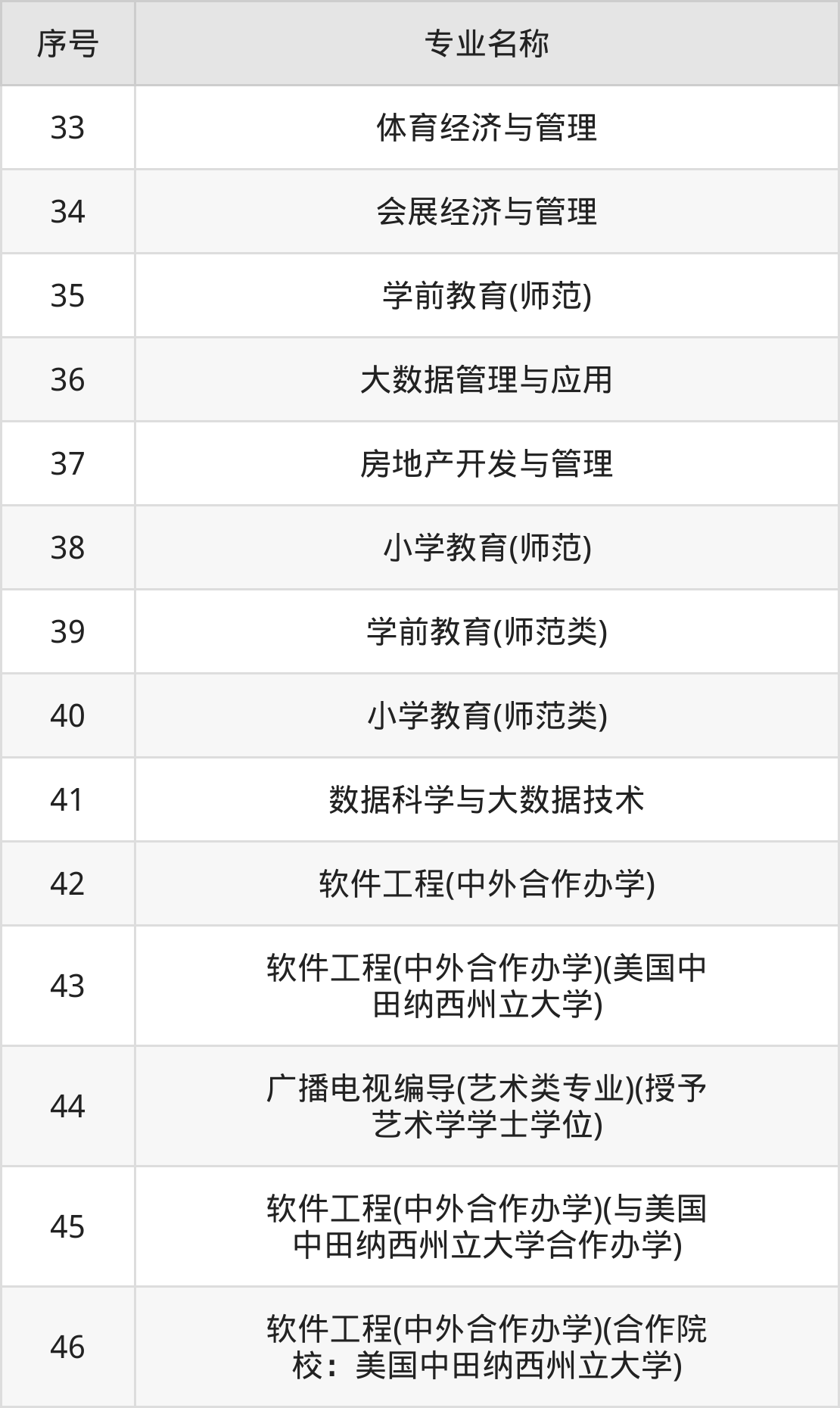 招生专业:46个;