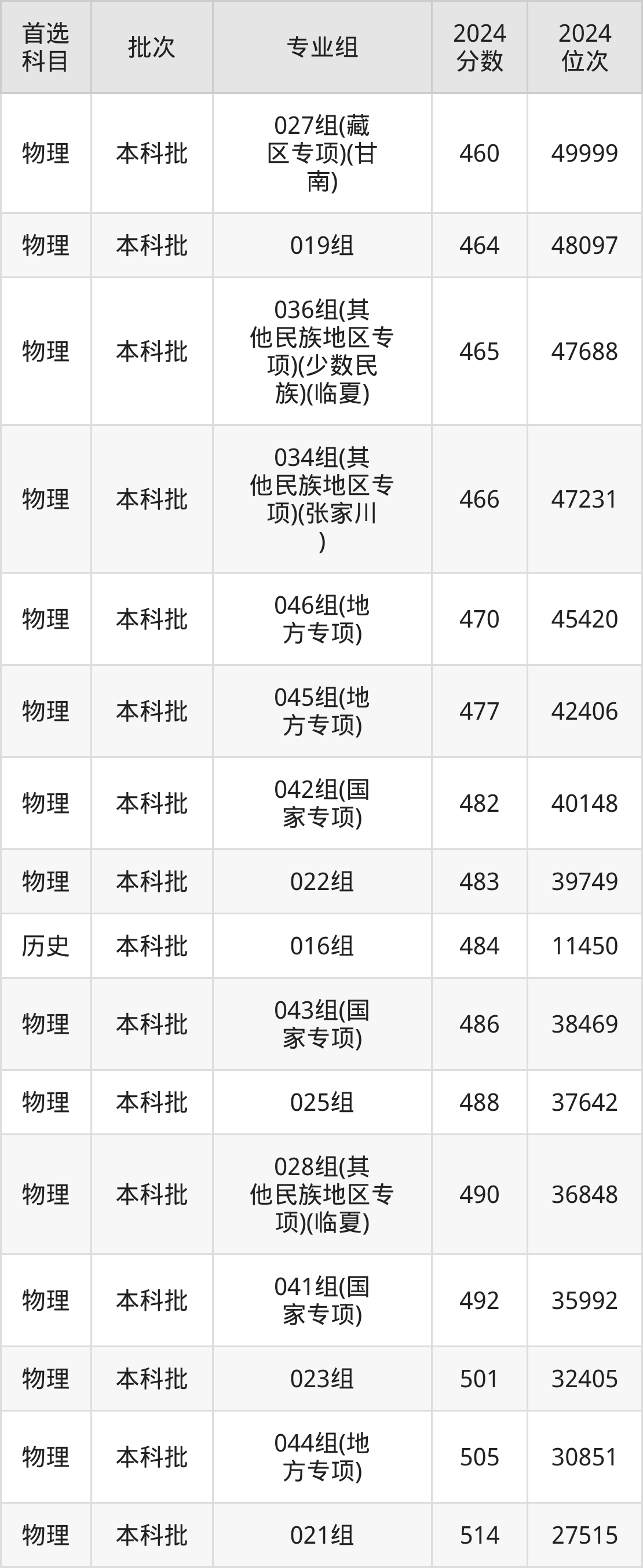 下面是2024年甘肃中医药大学在甘肃省内录取分数线: