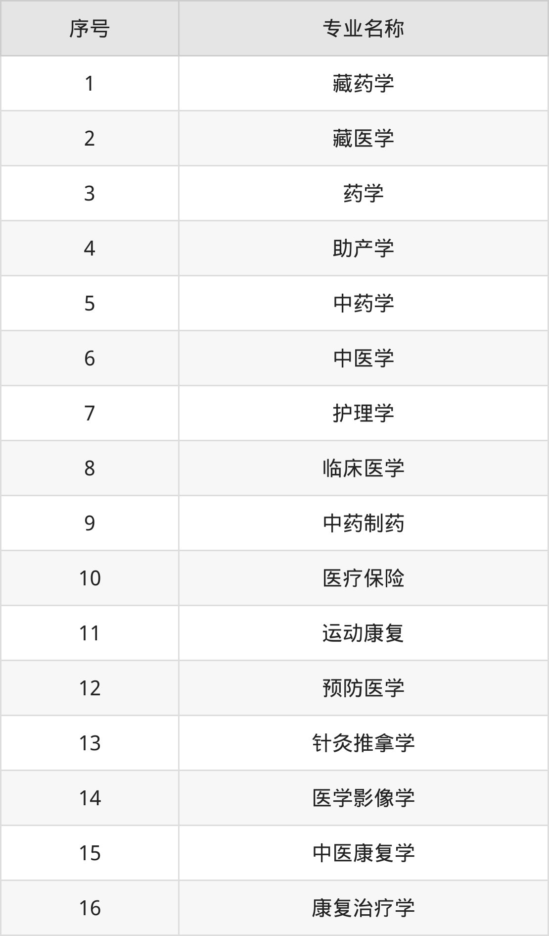 物理类(理科)本科招生专业:藏药学、藏医学、药学、助产学、中药学、护理学、中医学、预防医学、临床医学、医疗保险等。