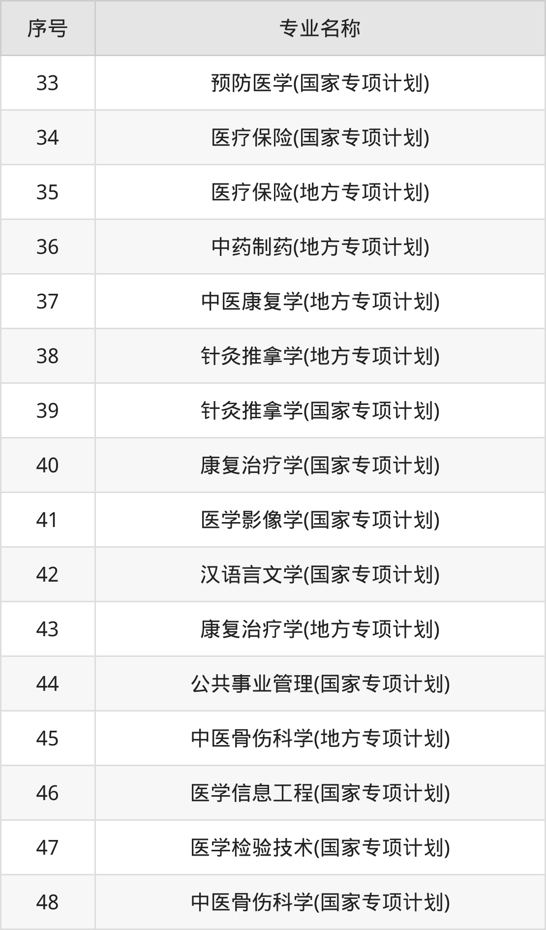 历史类(文科)本科招生专业:助产学、护理学、医疗保险、汉语言文学、公共事业管理、国际经济与贸易、医疗保险(国家专项计划)、医疗保险(地方专项计划)、汉语言文学(国家专项计划)、公共事业管理(国家专项计划)等。