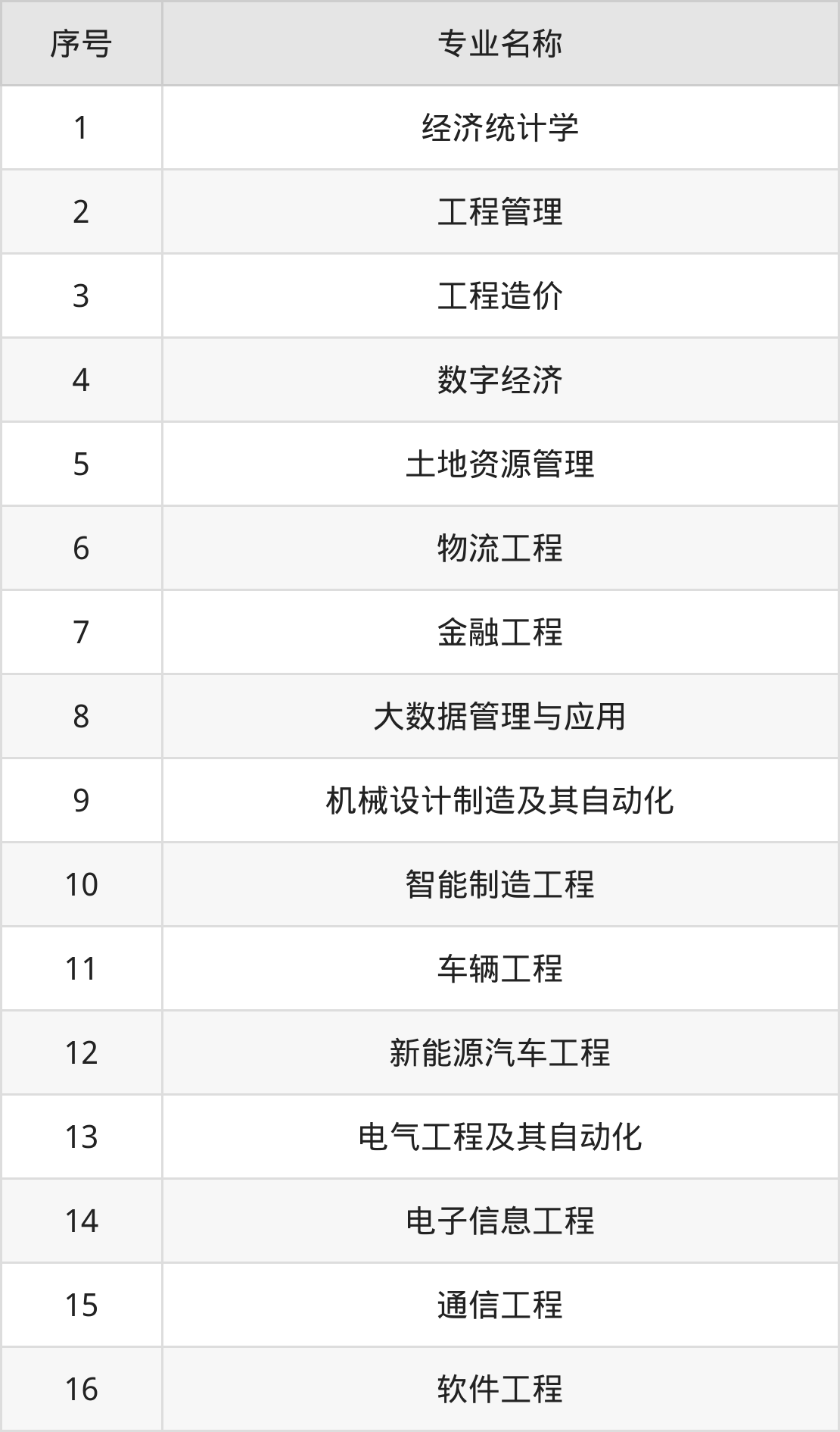 物理类(理科)本科招生专业:经济统计学、工程管理、工程造价、数字经济、土地资源管理、物流工程、金融工程、大数据管理与应用、机械设计制造及其自动化、智能制造工程等。
