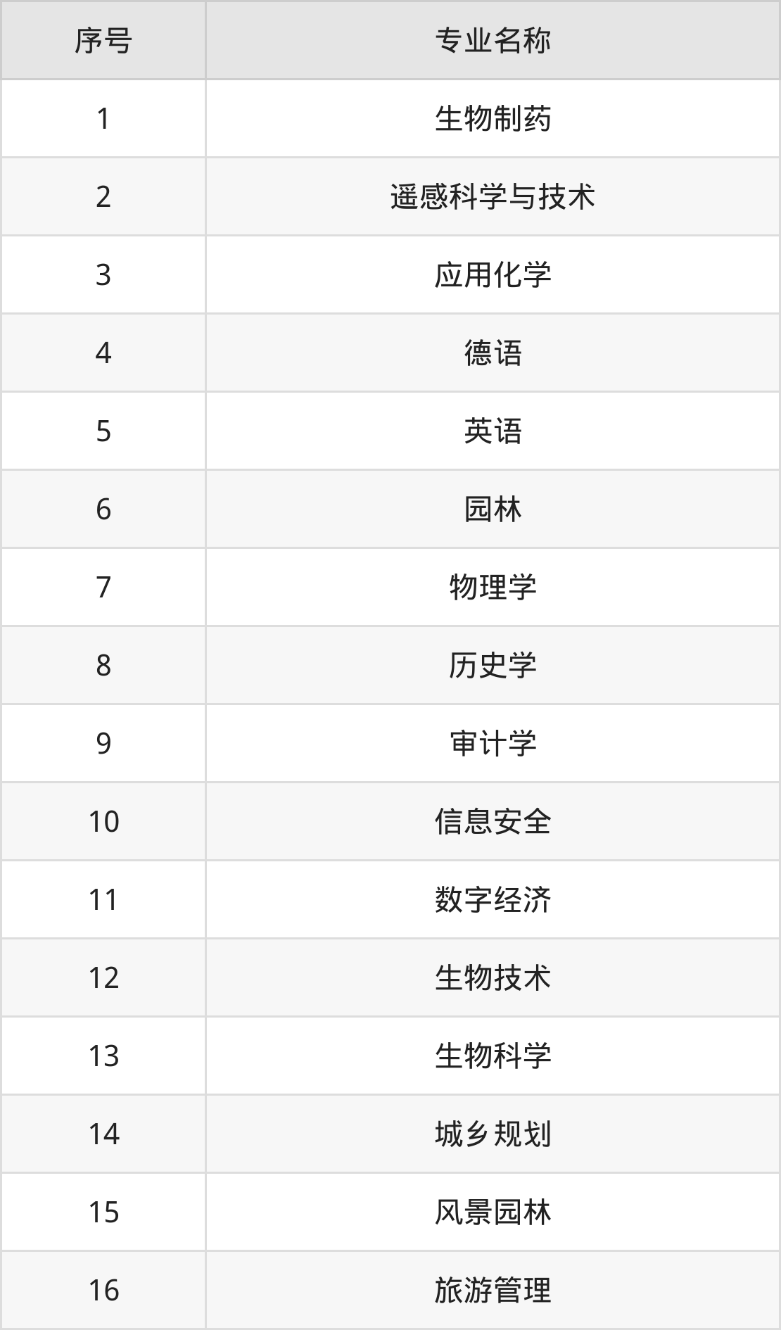 物理类(理科)本科招生专业:生物制药、遥感科学与技术、应用化学、德语、园林、审计学、生物科学、生物技术、信息安全、城乡规划等。