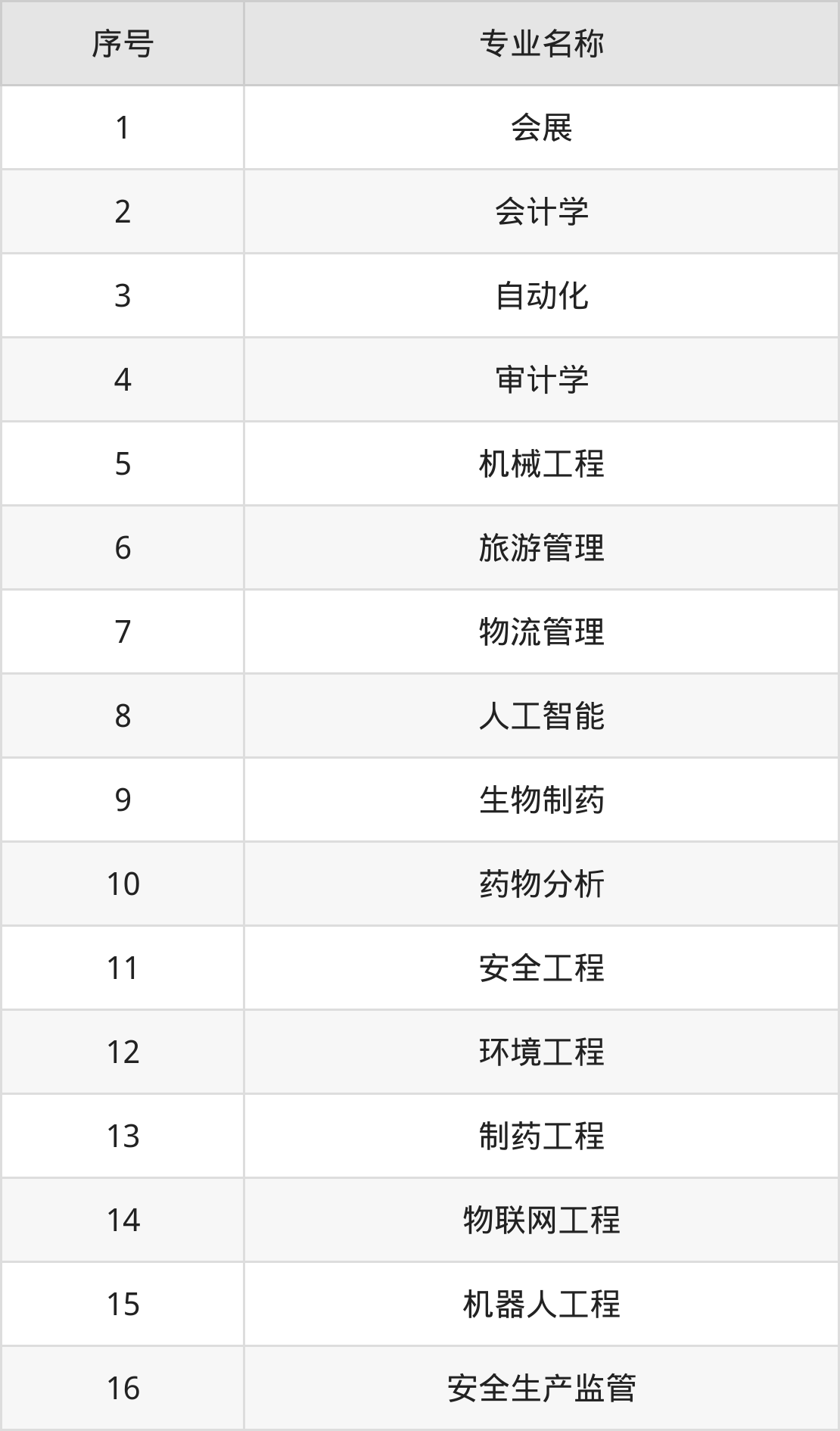 物理类(理科)本科招生专业:会展、自动化、人工智能、机械工程、旅游管理、药物分析、物流管理、制药工程、环境工程、安全工程等。