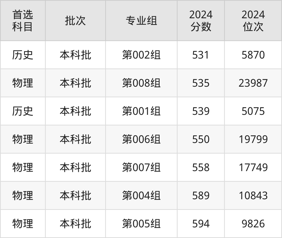 从2024年哈尔滨医科大学在黑龙江省内的录取分数线来看,本科批录取分数线都在530分以上,录取分数线最高的是第005组,2024年最低分为594分;录取分数线最低的是第002组,2024年最低分为531分。