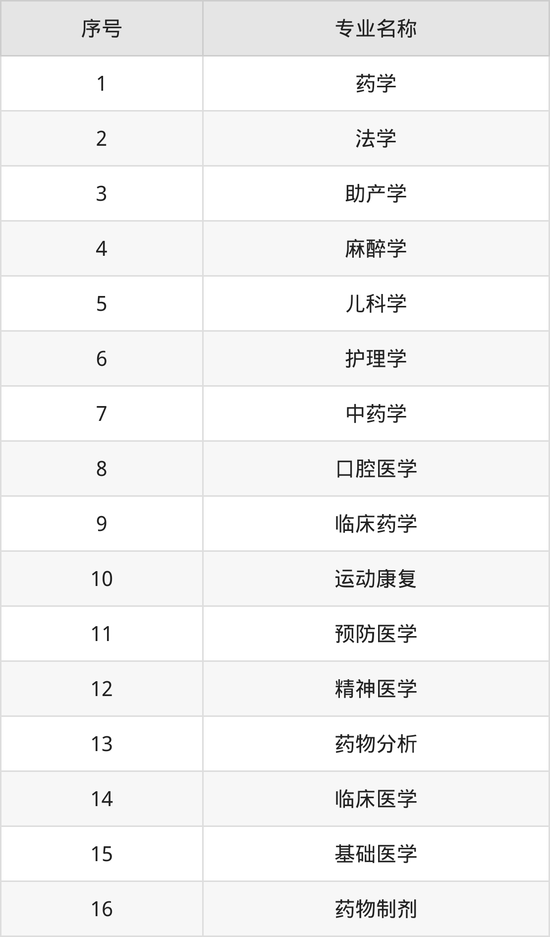 物理类(理科)本科招生专业:药学、助产学、中药学、麻醉学、儿科学、护理学、基础医学、预防医学、临床药学、口腔医学等。
