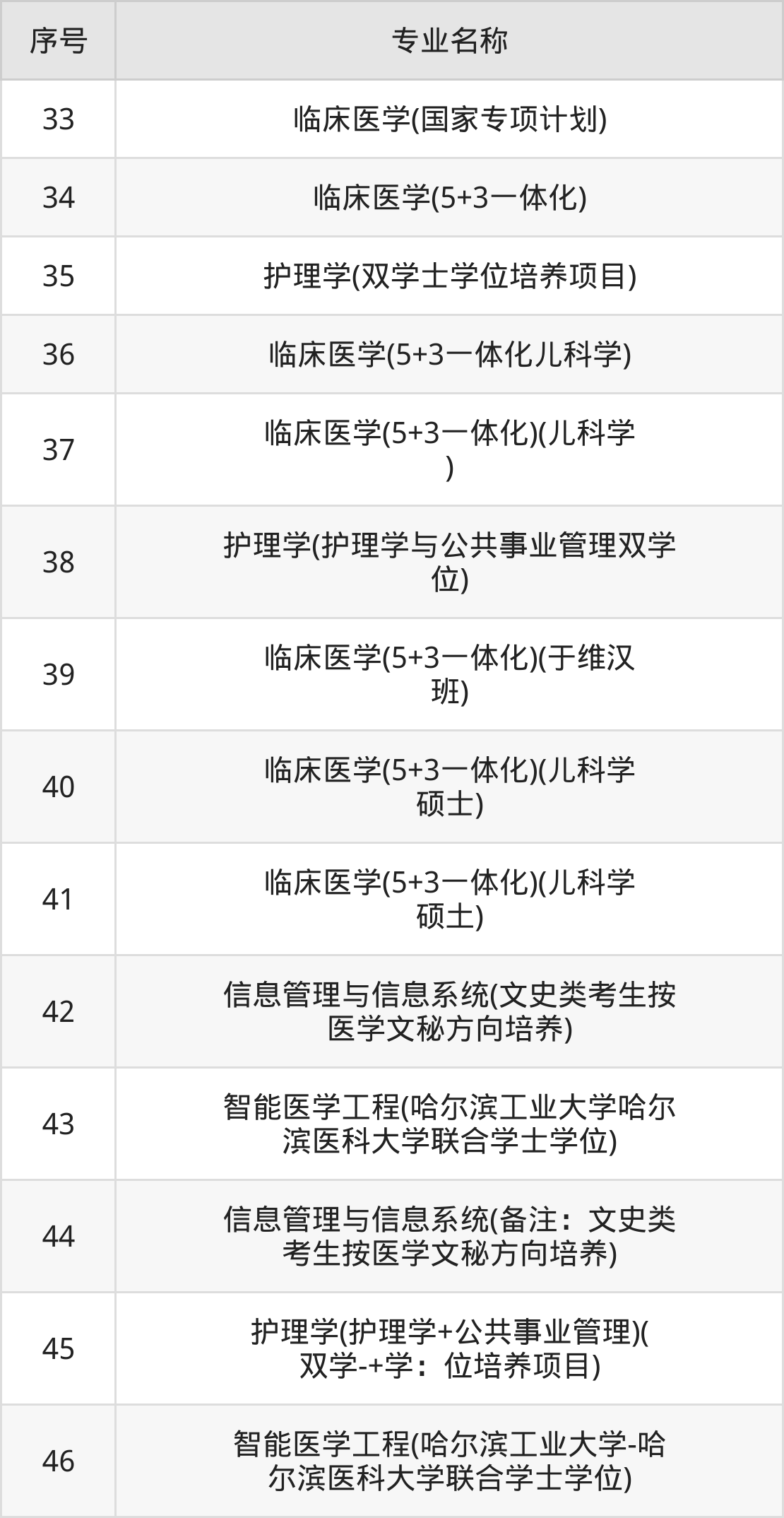 目前,哈尔滨医科大学公布了2024年本科招生专业,共46个。