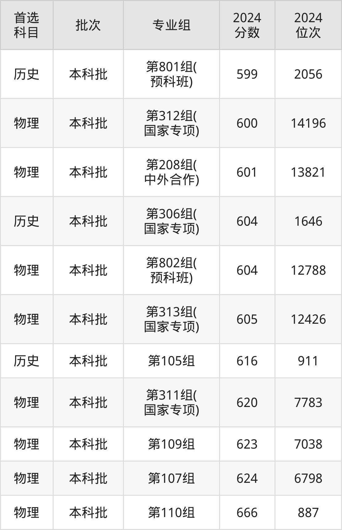 从2024年中南大学在湖南省内的录取分数线来看,本科批录取分数线都在590分以上,录取分数线最高的是第110组,2024年最低分为666分;录取分数线最低的是第801组(预科班),2024年最低分为599分。