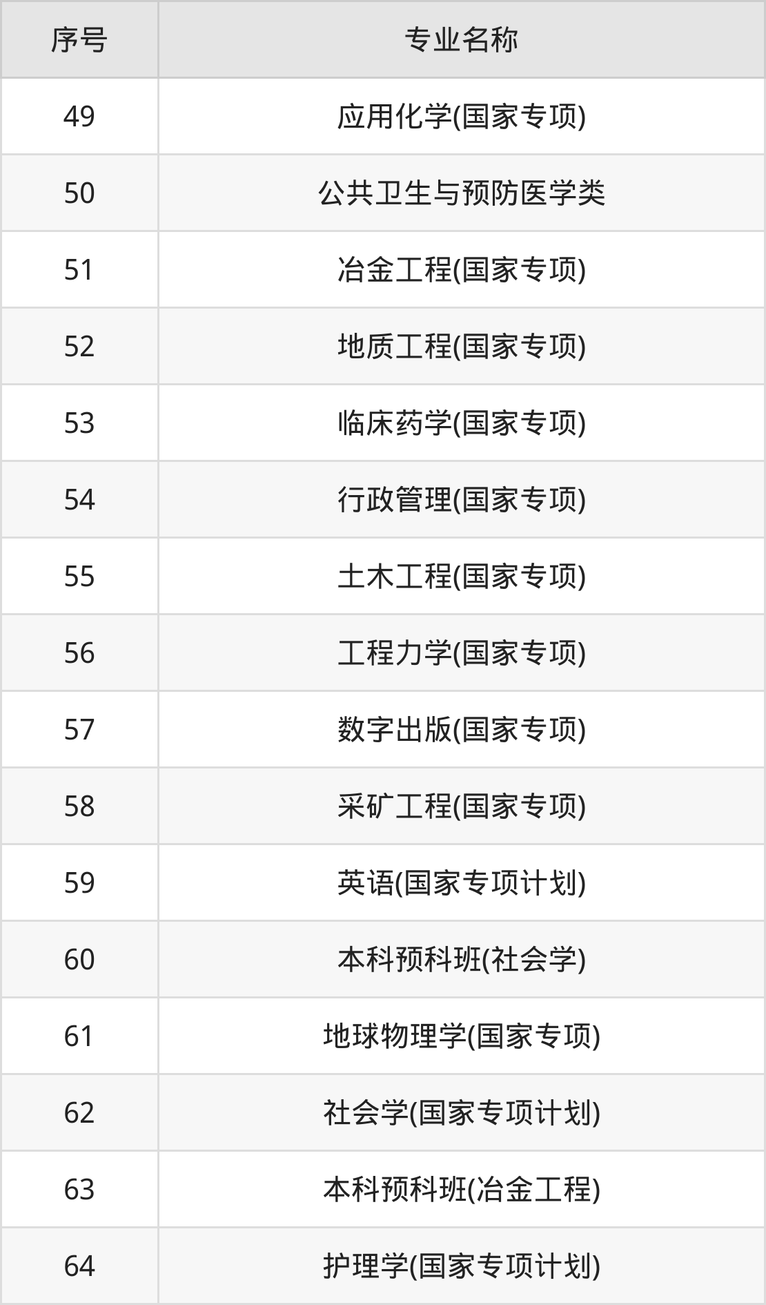 物理类(理科)本科招生专业:生物工程、法医学、生物信息学、药学、建筑类、数学类、机械类、冶金工程、口腔医学、地质工程等。