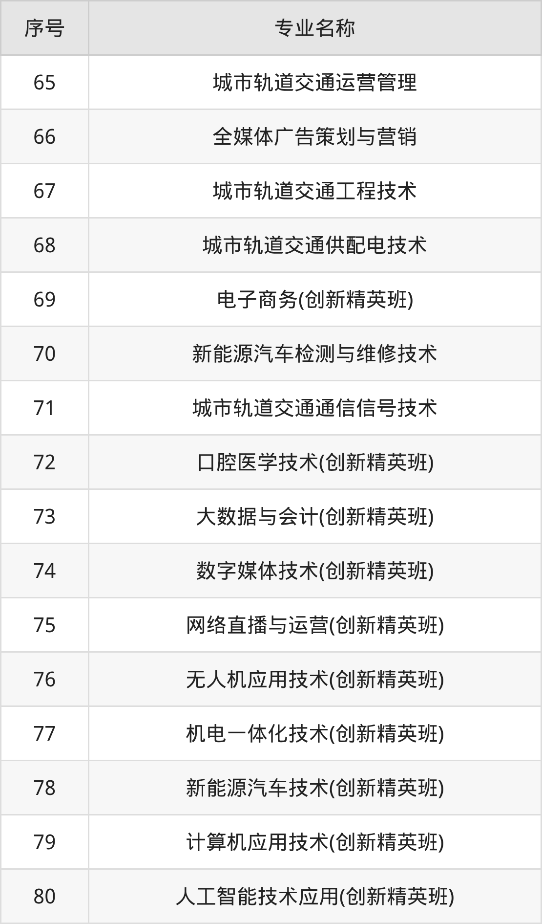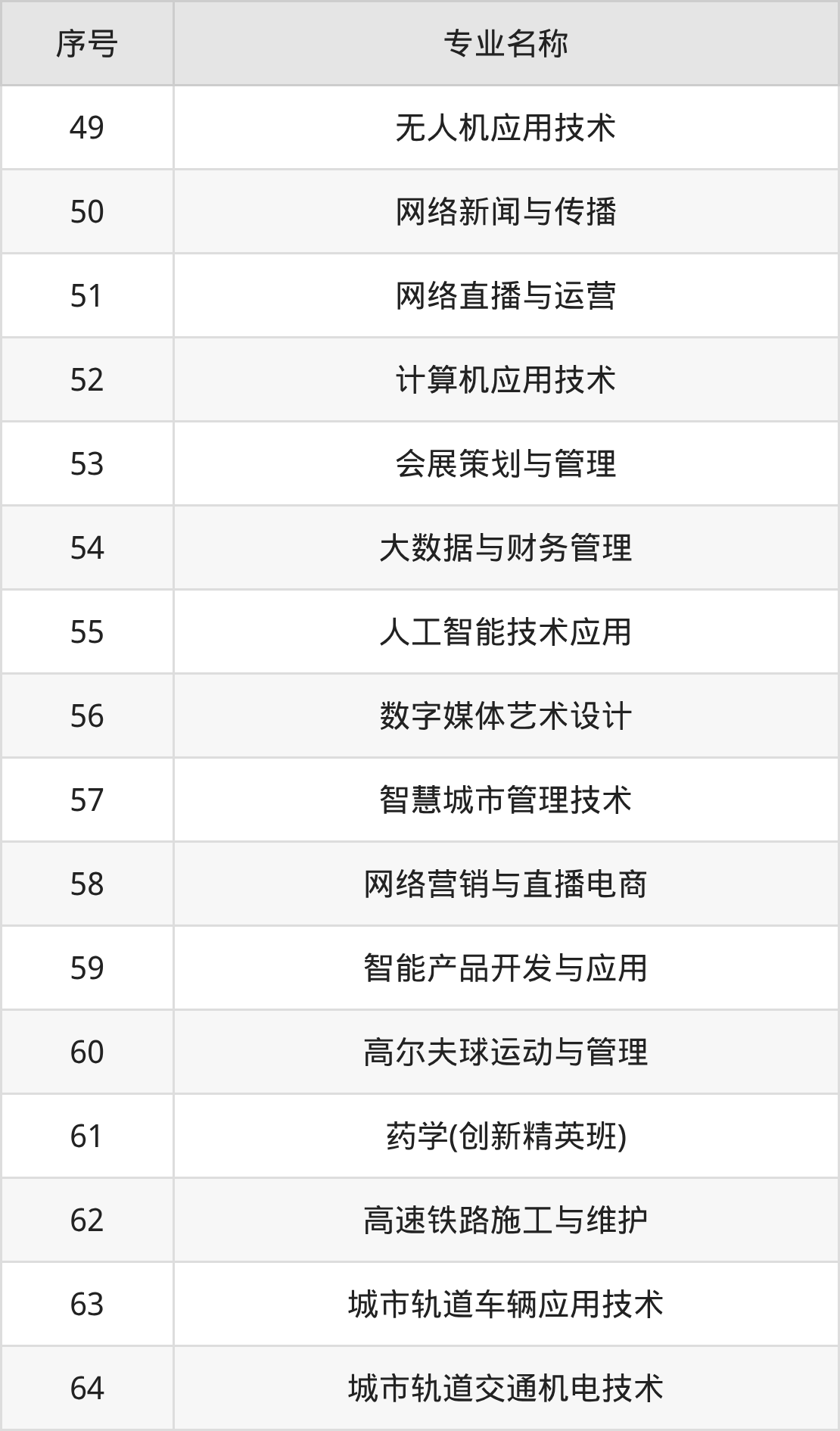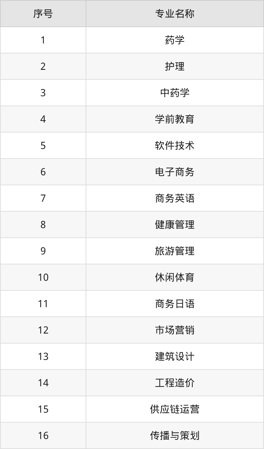 专科招生计划