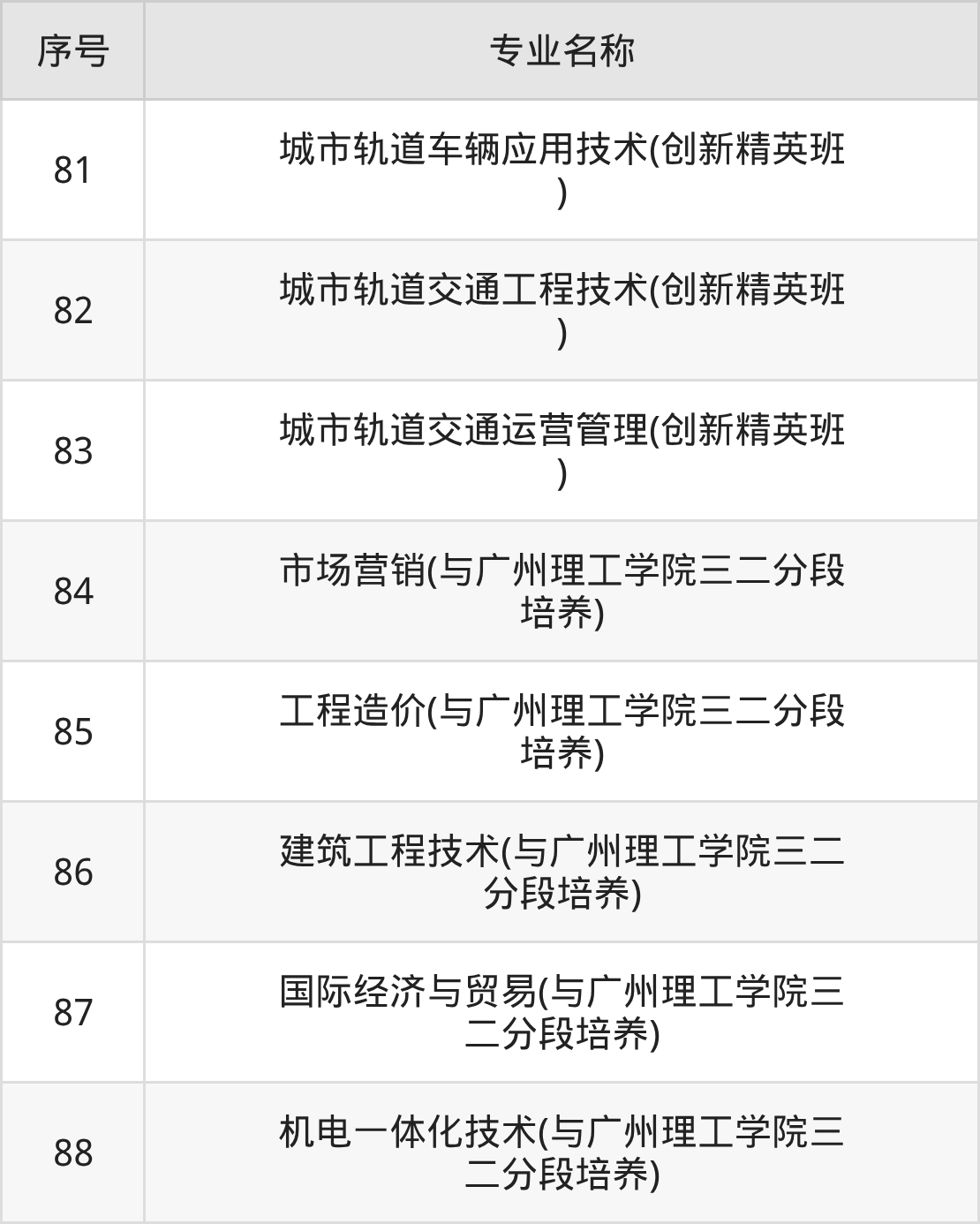 目前,广州城建职业学院公布了2025年专科招生专业,共88个。
