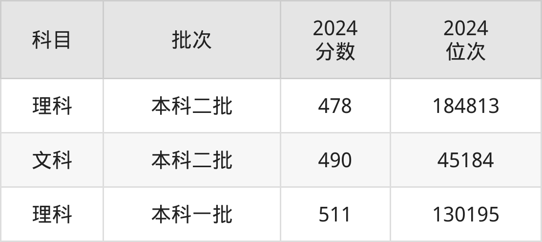 从2024年新乡学院在河南省内的录取分数线来看,本科批录取分数线都在470分以上,录取分数线最高的是理科,2024年最低分为511分;录取分数线最低的是理科,2024年最低分为478分。