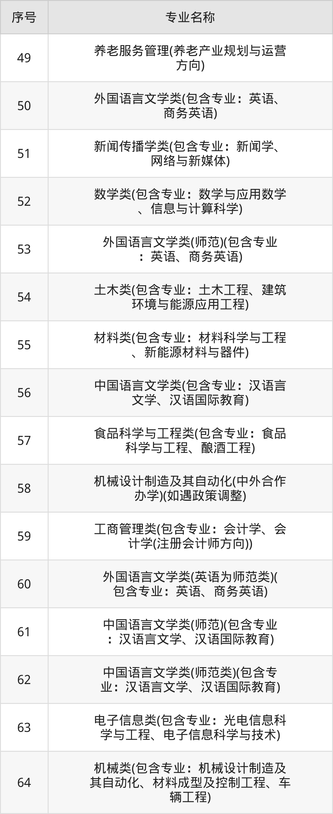 目前,新乡学院公布了2024年本科招生专业,共66个;2024年专科招生专业为1个。