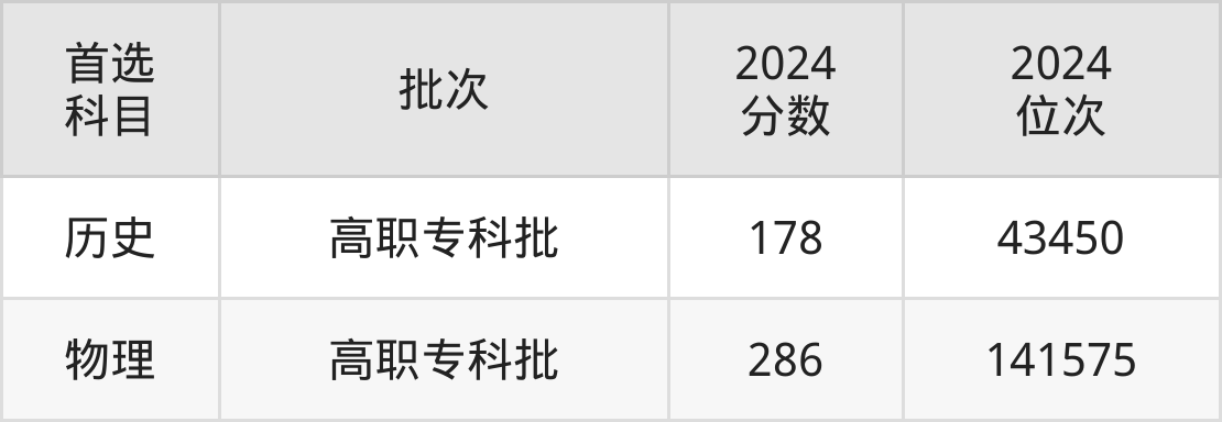 2024年抚顺师范高等专科学校在辽宁省内专科批的录取分数线都在170分以上,在历史类的录取分数线为178分;物理类的录取分数线为286分。