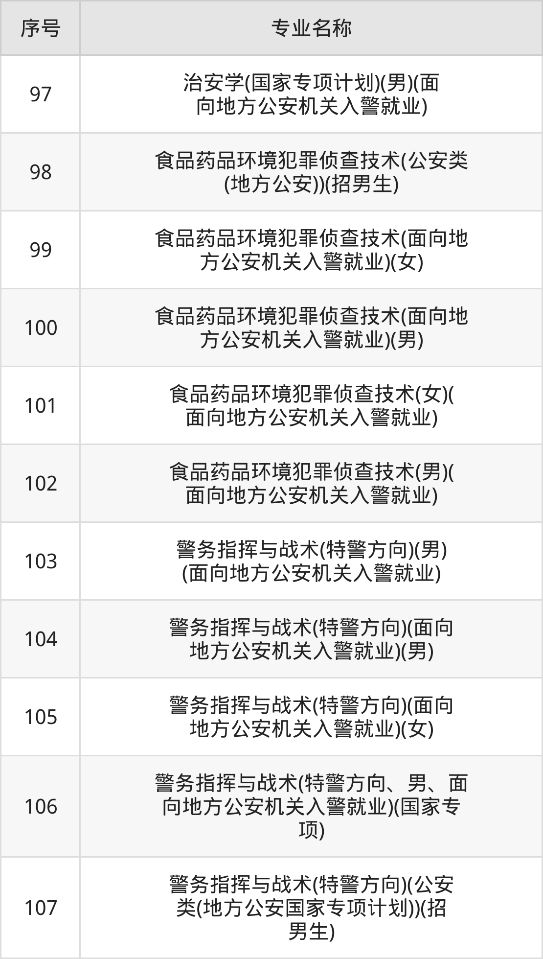 目前,南京警察学院公布了2024年本科招生专业,共107个。