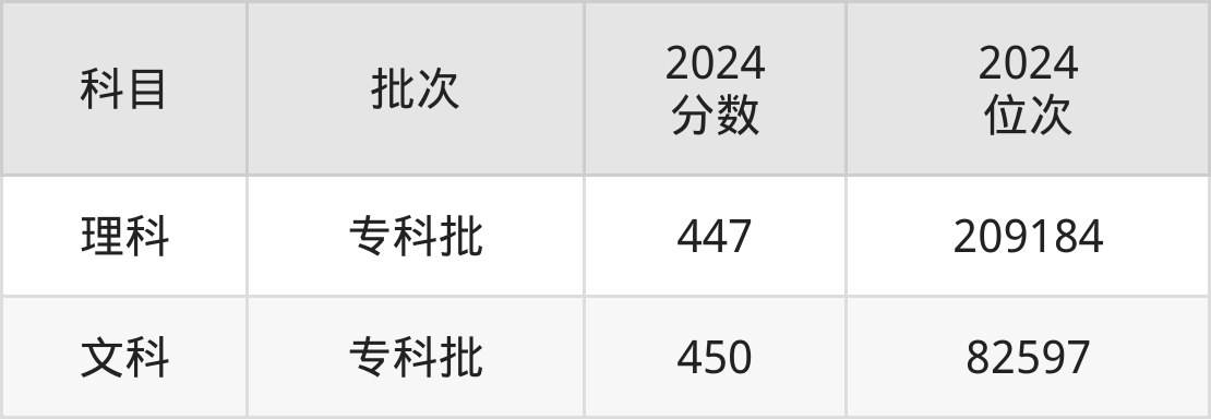 2024年乐山职业技术学院在四川省内专科批的录取分数线都在440分以上,在文科的录取分数线为450分;理科的录取分数线为447分。