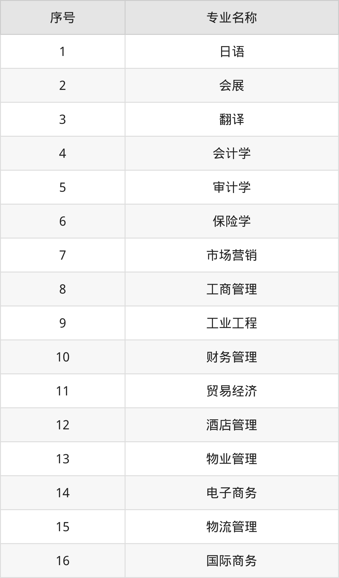 历史类(文科)本科招生专业:日语、会展、翻译、会计学、审计学、保险学、贸易经济、商务英语、电子商务、工商管理等。