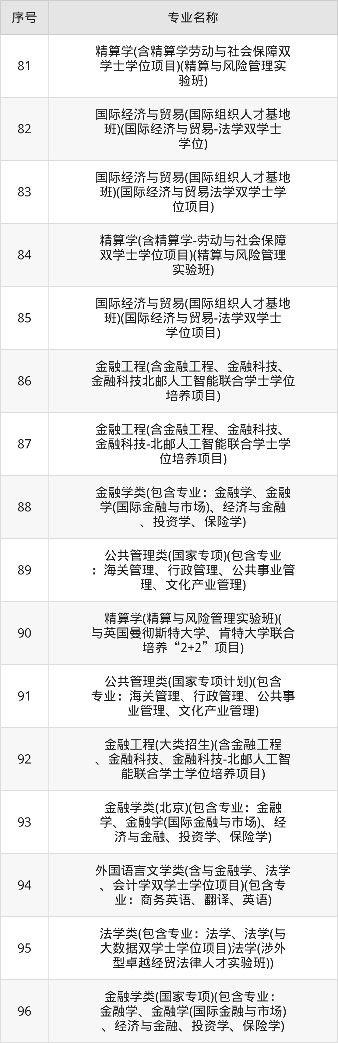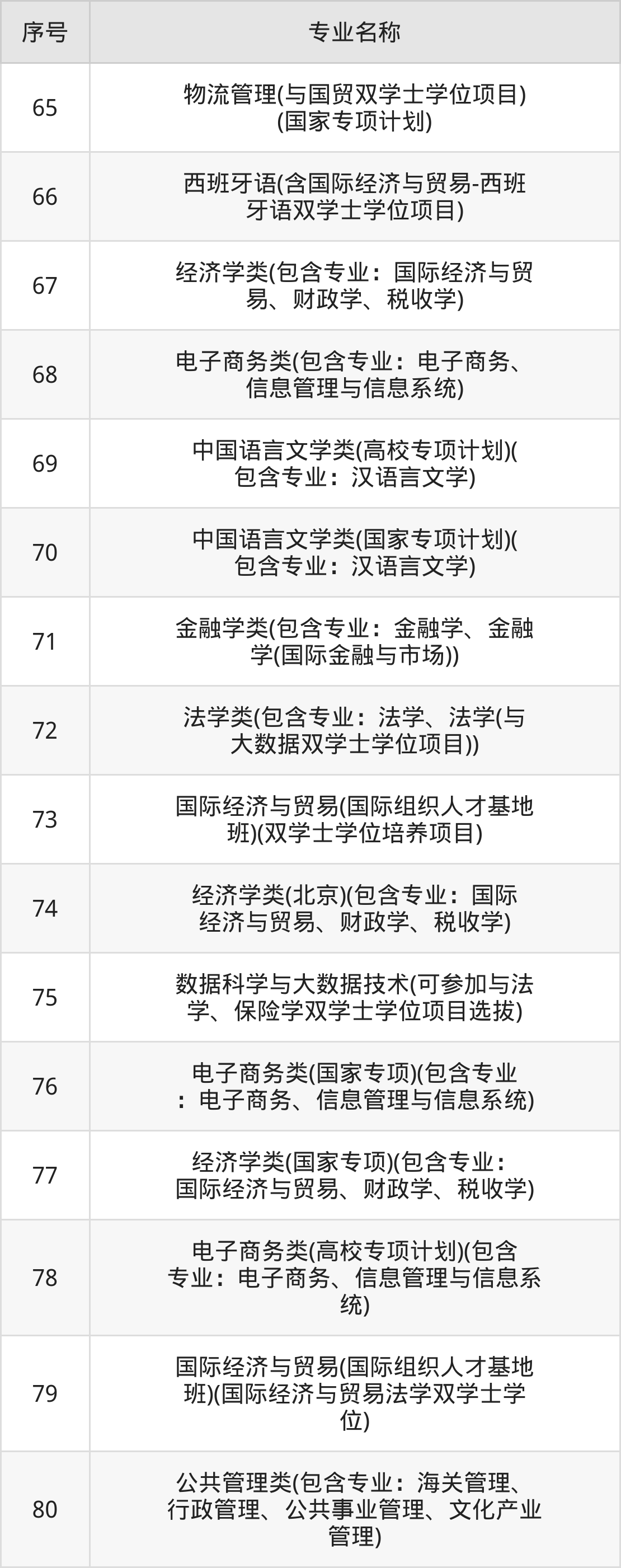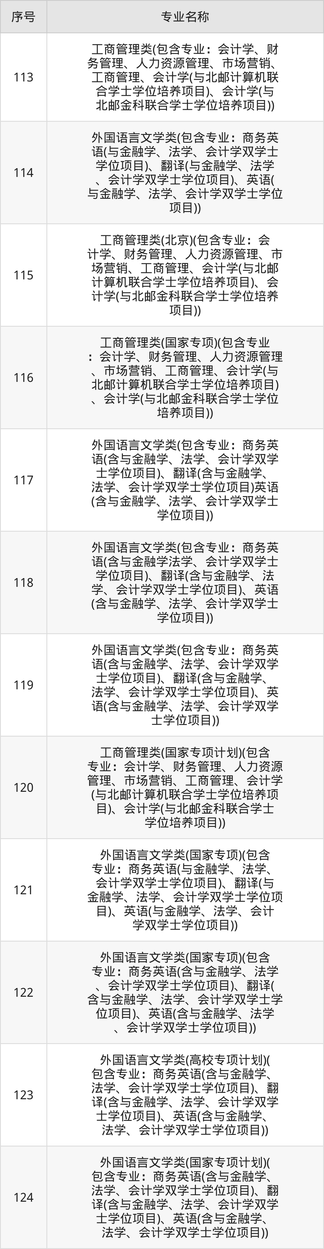 目前,对外经济贸易大学公布了2024年本科招生专业,共124个。