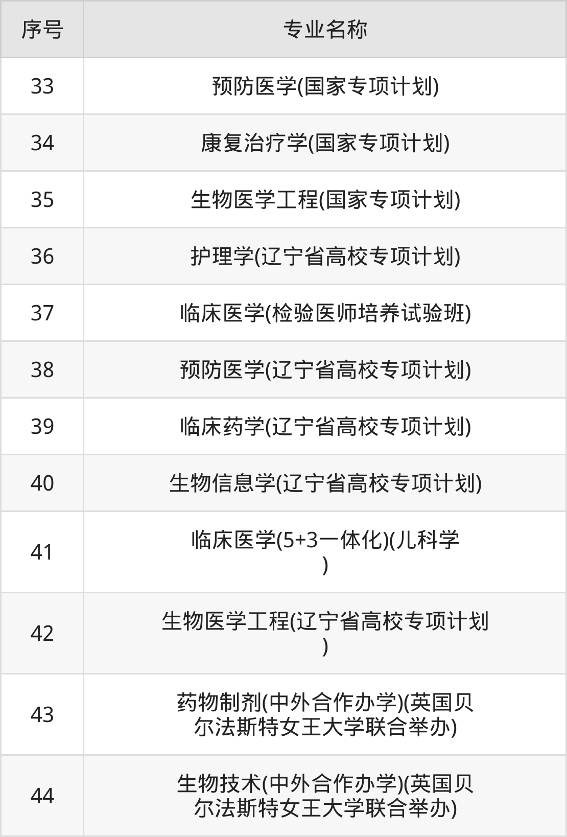 目前,中国医科大学公布了2024年本科招生专业,共44个。