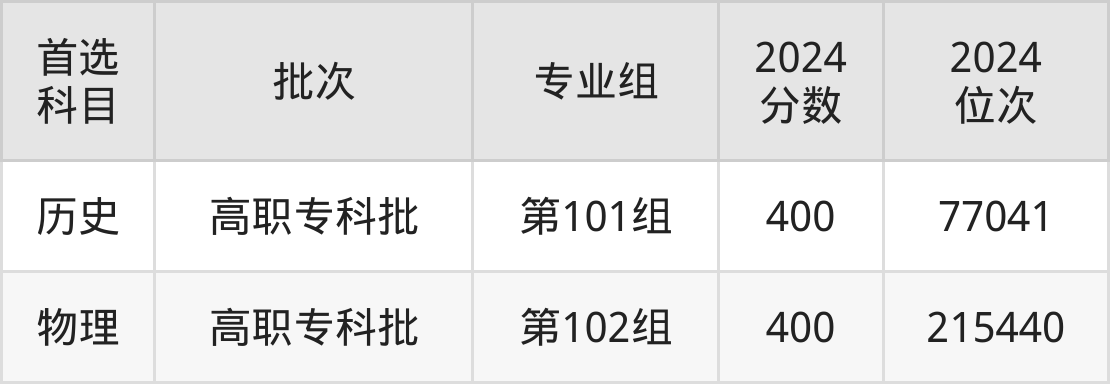 2024年河南司法警官职业学院在湖南省内专科批的录取分数线都在400分以上,在历史类的录取分数线为400分;物理类的录取分数线为400分。