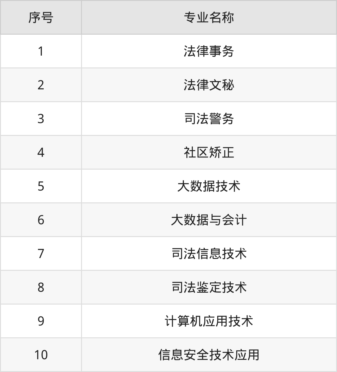目前,河南司法警官职业学院公布了2024年专科招生专业,共10个。
