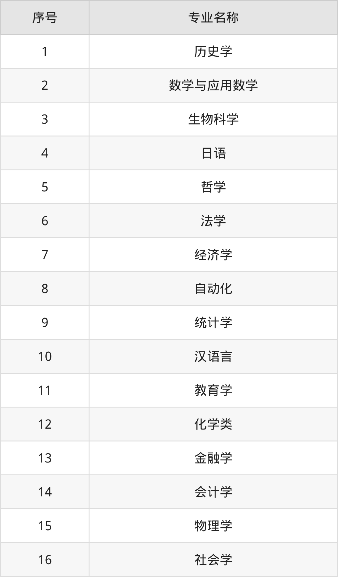 历史类(文科)本科招生专业:历史学、法学、哲学、日语、会计学、金融学、经济学、教育学、社会学、汉语言等。