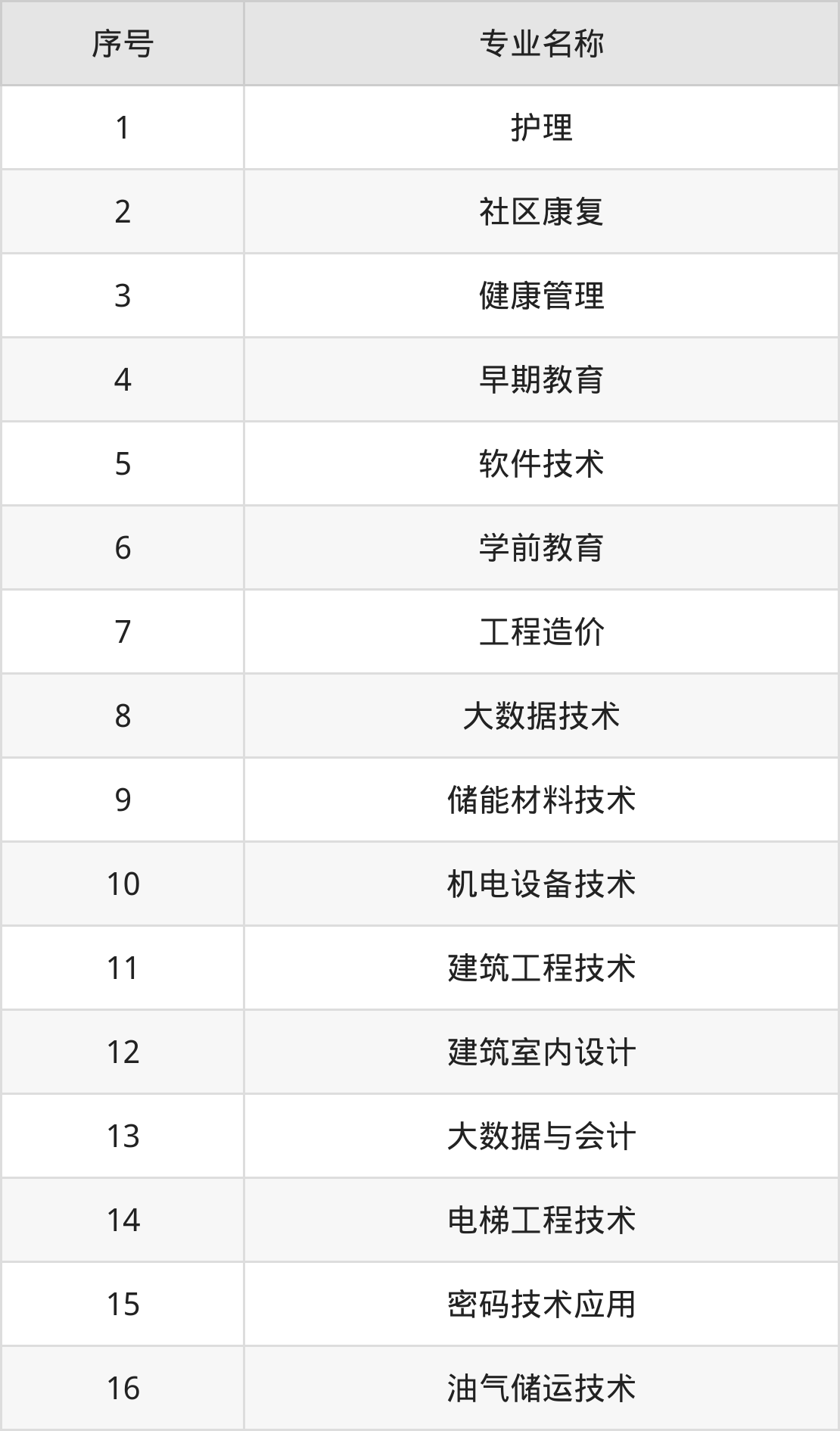 重庆能源职业学院2024招生计划共1415人,专科计划招生1395人;2024年专科招生专业共37个,包括护理、社区康复、健康管理等。